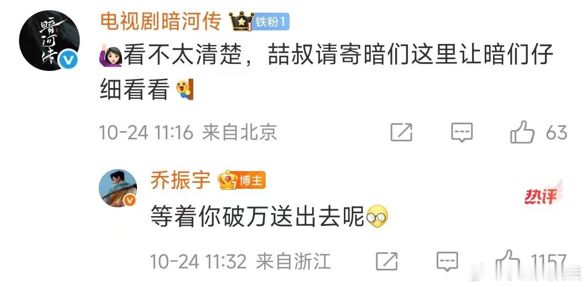 乔振宇说暗河传破万送签名拍立得乔振宇说《暗河传》破万就送签名拍立得,照片里他和剧
