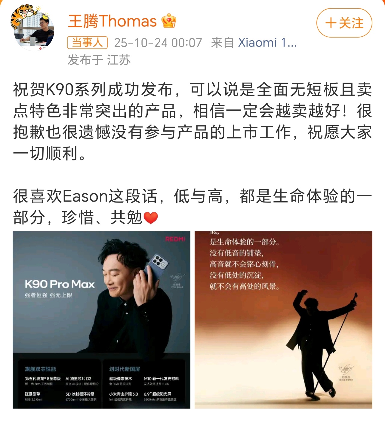 王腾说很遗憾没有参与产品上市工作还在这么积极的互动宣传,该不会还有机会回去吧?双方的操作有点东西啊……