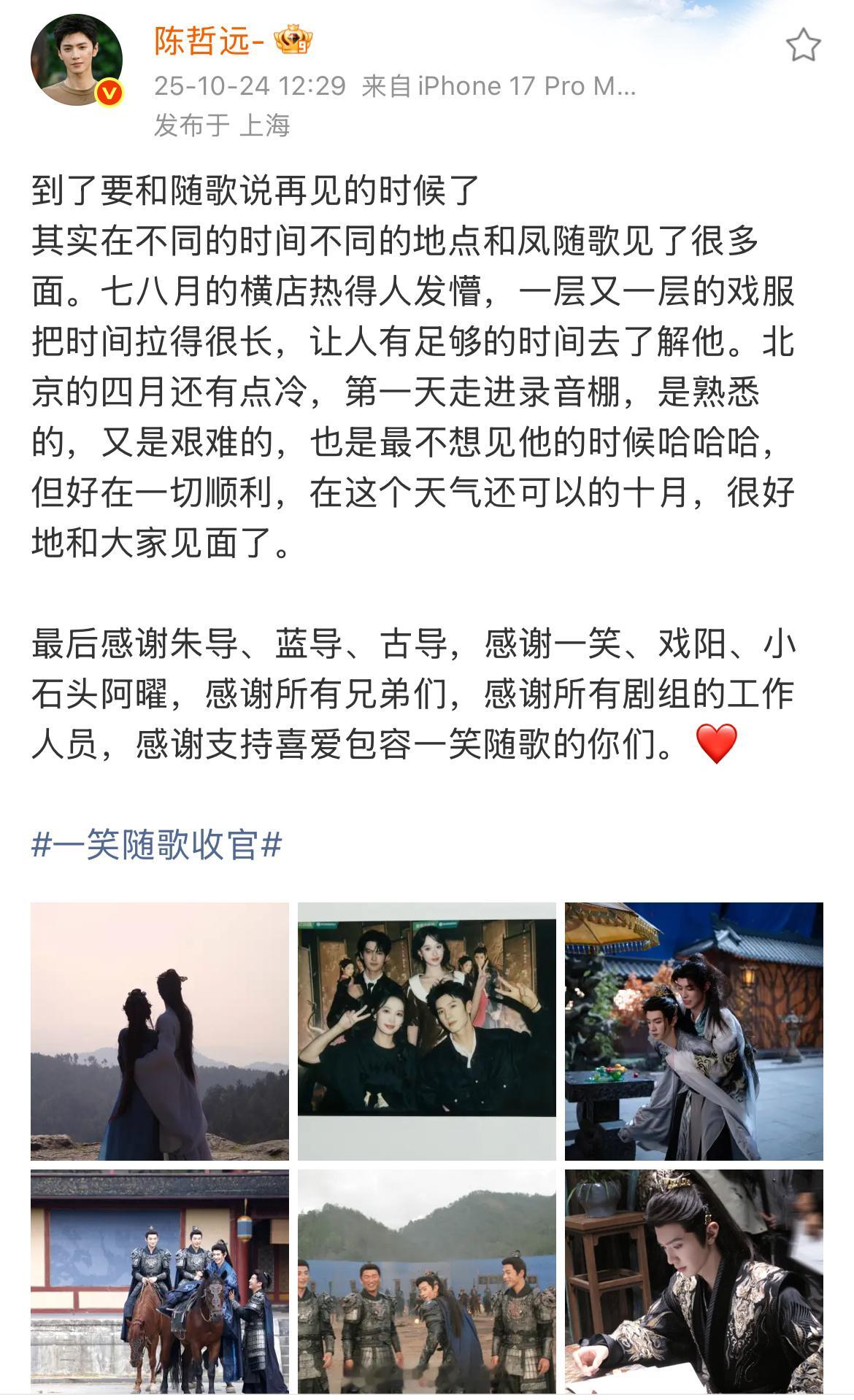 李沁陈哲远一笑随歌告别文李沁陈哲远一笑随歌收官发文我们特别真诚的一笑随歌