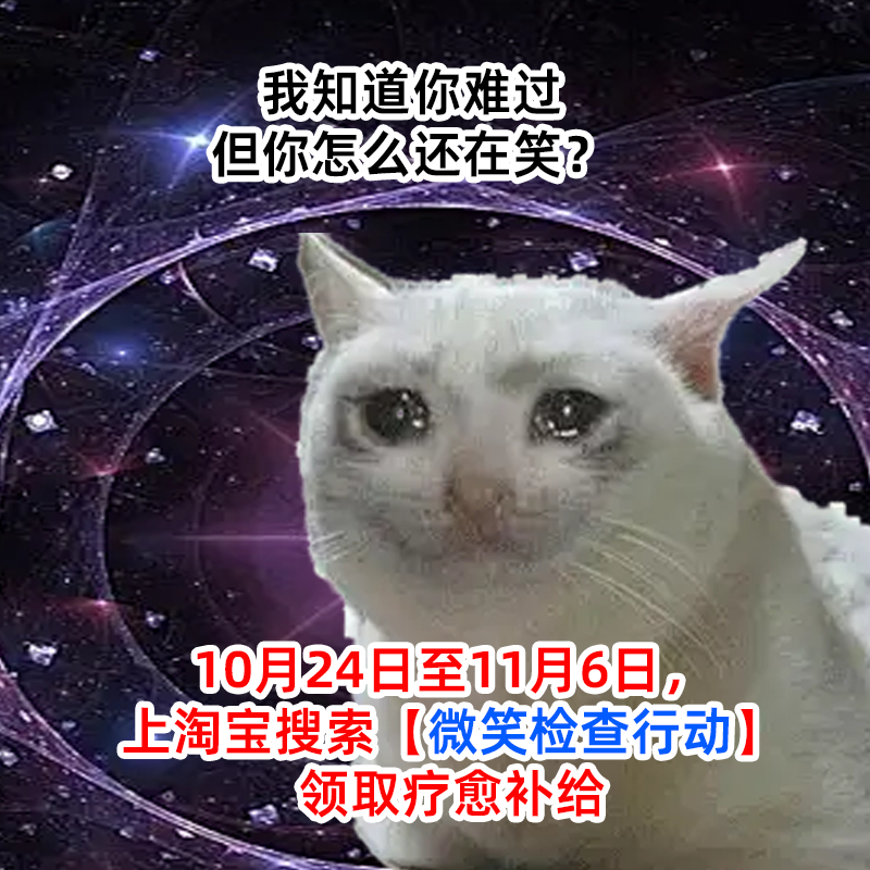 算下来,脸上最累的一块肌肉就是笑肌...终于明白为什么总是能量告急——警惕微笑背后的情绪负债原来微笑也会“透支”!10.24-11.6赶紧上淘宝搜【微笑检查行动】,抽点治愈好物补充我的"情绪余额"!是时候让紧绷的嘴角放个假,做回最真实的自己了!
