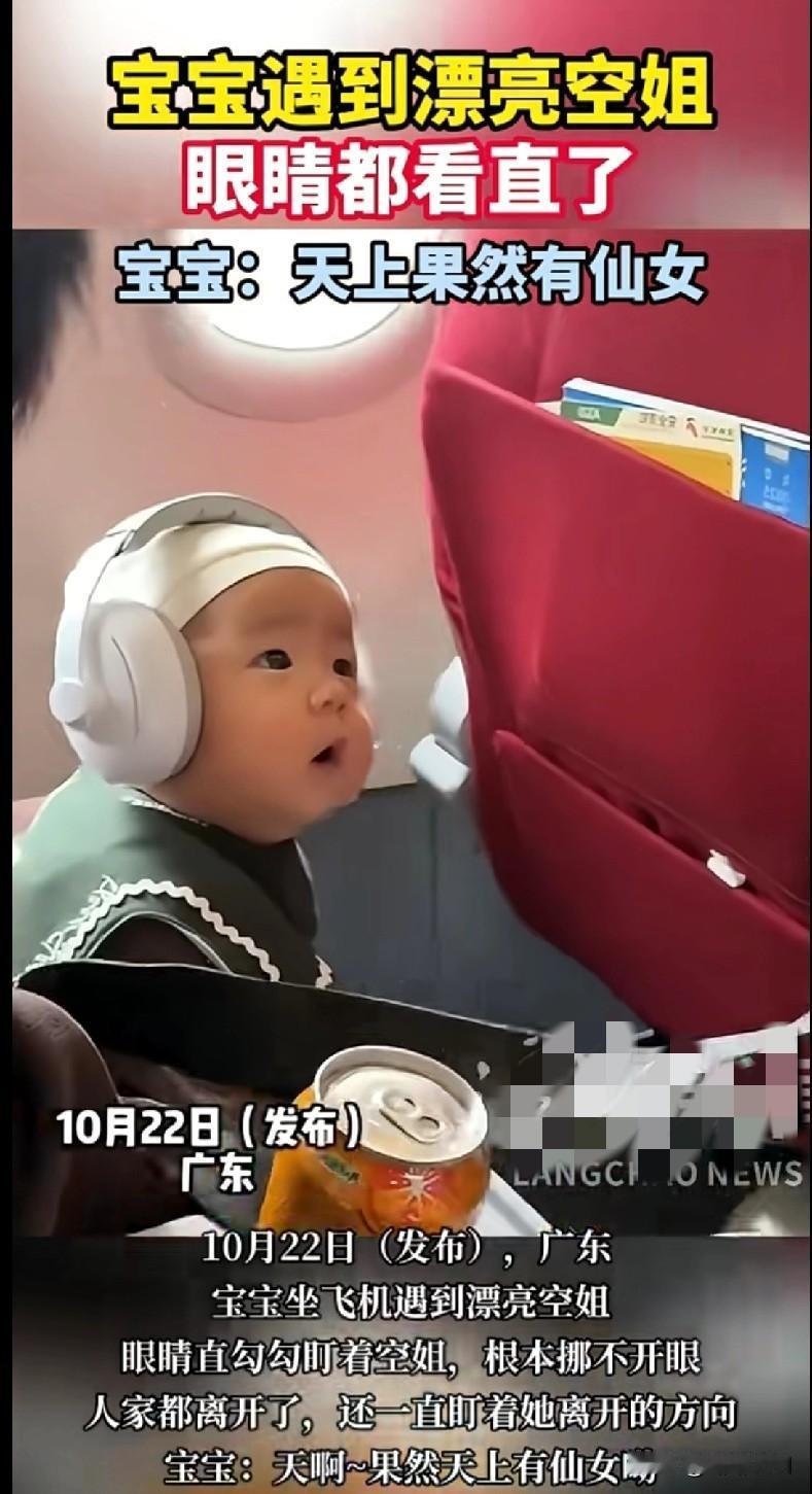 家人们快来看这个人类幼崽的“迷弟”行为!广东一宝宝坐飞机,遇上漂亮空姐后眼睛直接看直了,那小眼神儿就跟被钉住了似的,空姐走到哪儿他盯到哪儿,人家都离开好久了,还执着地望着方向不肯挪眼,内心os怕不是“原来天上真的有仙女啊”!戴着大大耳机,一脸认真又痴迷的模样,简直萌化了!这大概是对“仙女”最纯真的崇拜了,果然不管多大,看到漂亮姐姐都得犯“花痴”,小家伙把咱们的小心思演得明明白白的,谁看了不被这眼神戳中啊~
