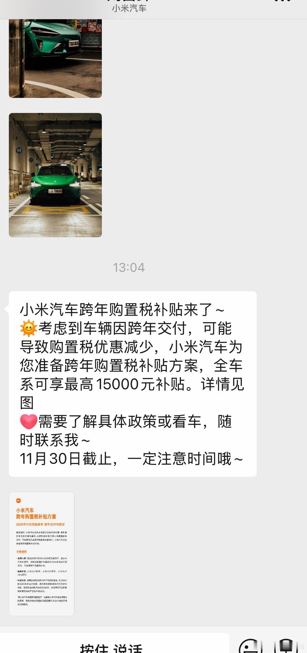 随着明年一季度购置税政策的调整预期临近,年底极可能迎来一波需求高峰。米子的销售跟单跟得真紧,经常发慰问信息和新政策。想想有些品牌的销售实在是躺的太平了:请问,你有啥资格比小米还躺的平?[doge]