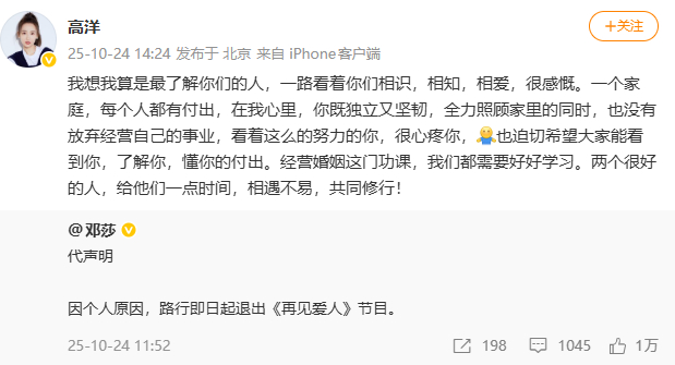 高洋支持邓莎高洋说给邓莎路行一点时间 两个很好的人,给他们一点时间,相遇不易,共同修行!