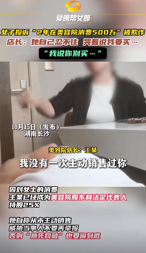 湖南一女子两年在美容院花了近500万,结果无意间发现,6万一支的护臀霜市场上只卖一块七!对方还当她是傻子,推销什么“吃了变聪明的智慧菌”、“吃了变瘦的瘦瘦菌”,网友:“真是吃饱了撑的!” 麻烦看官们右上角点击一下“ 关注”,既方便您进行讨论和分享,又能给您带来不一样的参与感,感谢您的支持! 10月15号,风芒新闻报道了湖南长沙一位刘女士遭遇的“美容院骗局”,面对镜头,她忍不住嘲讽:“干电信诈骗的看了这个行业,都会后悔自己入错行了!” 一支网上只卖一块七的护臀霜,被美容院包装成“瑞士进口耗材”,卖出六万元的天价。 而最荒诞的是,花钱的顾客刘女士两年间在这家店里总共消费了近五百万!直到她偶然查价,才意识到自己被当成了“行走的印钞机”。 事情的开头并不惊心动魄,两年前,刘女士因为朋友推荐,走进了这家装修金碧辉煌的国际美容会所。 大厅里弥漫着香薰味,墙上挂着一堆“国际认证”“欧洲合作实验室”的证书,第一次体验完,她觉得皮肤确实亮了点,加上店员一口一个“贵妇专享”,她心想贵一点也合理,毕竟“保养要舍得”。 于是她办了会员卡,开启了这场漫长又烧钱的“美丽修行”。 美容院的人显然非常懂心理学,第一步是制造焦虑,顾问拿着仪器在她脸上比划一通,指着红红绿绿的图像说:“毒素堆积严重,再不做就会塌脸。” 紧接着推出所谓的“多巴胺焕活疗程”,原价一百二十万,现在内部价只要一百万,听着像是占了便宜。 第二步是营造稀缺,抽脂项目被说成“名额只剩一个”,她当场掏了七十五万,就连一台吹风机也被宣传成意大利定制款,八万元轻松拿下。 在这种环境里,人很容易丧失判断力,刘女士慢慢形成一种“贵就是好”的惯性思维。 于是当店员拿出那款护臀霜,神秘兮兮地说“这可是瑞士实验室专供,配合抽脂恢复用”,她没多想就刷了六万,还觉得自己挺专业。 转折出现在去年九月,刘女士家里工厂资金出了点问题,她想着会员卡里还剩一百七十多万,退出来周转一下,没想到美容院立刻变脸。 原本甜言蜜语的经理,一秒切换冷漠客服语气:“合同写明充值不退。”刘女士拿出合同,密密麻麻的小字,关键条款一点没标注,怎么看都像是“埋伏”,她第一次有了被骗的直觉。 不甘心的她开始翻账单,结果越看越后怕,那瓶护臀霜的标签上写着进口编码,她拿去高桥化妆品批发市场核实。 老板看一眼笑出声:“这玩意我批发价一箱才四十块,1.7一支。”那一刻她只觉得脸上火辣辣的,原来自己辛辛苦苦赚来的钱,被这点智商税蒸发得干干净净。 刘女士报了案,市场监管局很快进店检查,仓库里堆着一箱箱所谓的“智慧菌”“瘦瘦菌”,外包装全是英文,既没中文标签,也没生产许可。 执法人员一查进货单,每盒成本八十元,售价一万多,说白了就是换个外壳、贴个外文标签,再配几句唬人的话术,就能让普通人乖乖掏钱。 事情曝光后,舆论炸开了锅,有人嘲讽:“智慧菌要真能让人变聪明,那老板该先吃两瓶。” 也有人替刘女士不平,再有钱也不该被这样当猴耍,不过笑归笑,这背后藏着的是行业里再典型不过的套路,用虚荣、焦虑和信任织成的网,把顾客慢慢套牢。 这件事最后由市场监管部门介入调查,美容院涉嫌虚假宣传、价格欺诈,甚至还有偷税漏税的线索。 市场调节价不是想怎么标就怎么标,要建立在诚信和合法的基础上,可这家美容院的态度就是,想闹就闹,奉陪到底! 回头看,刘女士的经历或许极端,却并不孤独,多少人在美容院的灯光下,被“高端”“定制”“进口”这些词麻醉,有人想变漂亮,有人想显得体面,可在这些欲望面前,总有人趁虚而入,把一块七的货吹成六万的梦。 美容的确能让人变美,但最该保养的,其实是清醒的头脑! 对此,大家能接受花多少钱在自己的脸上呢?
