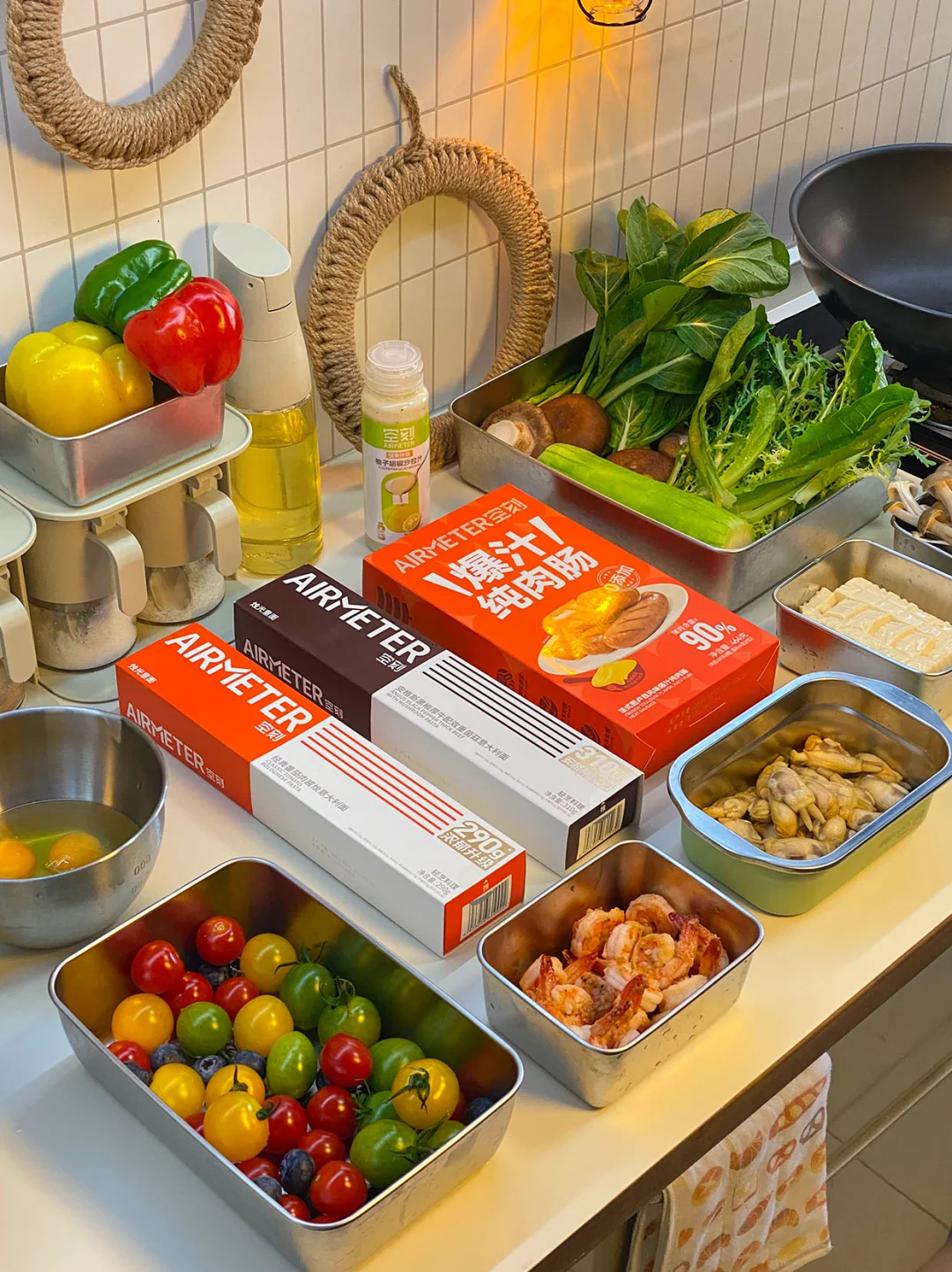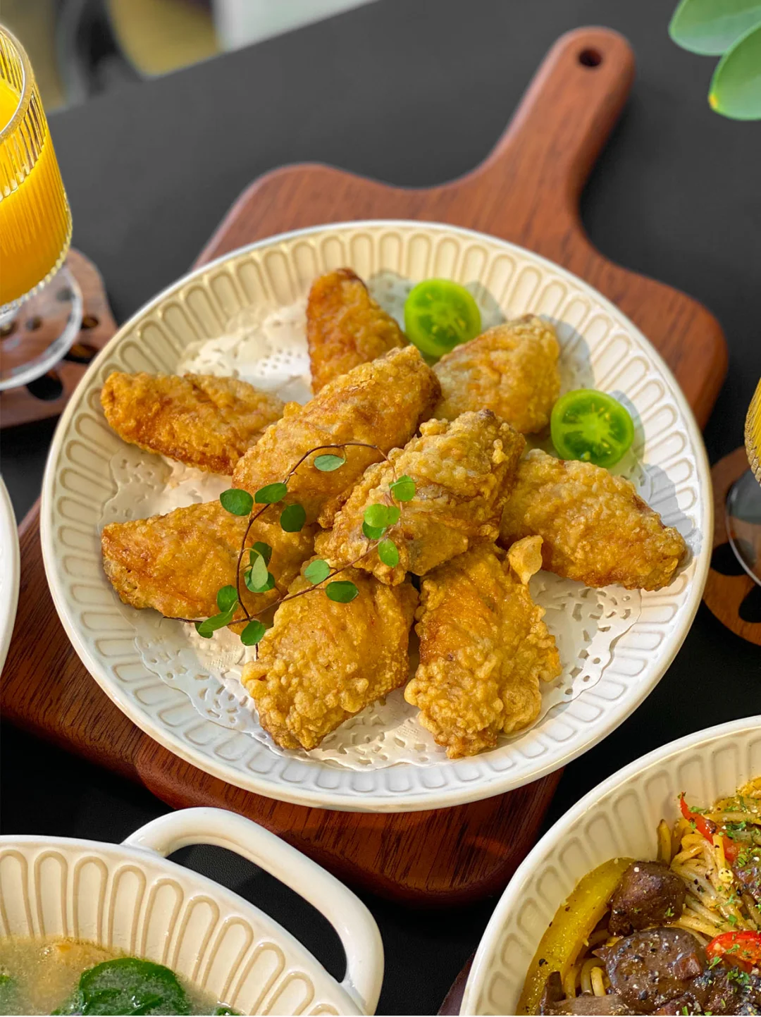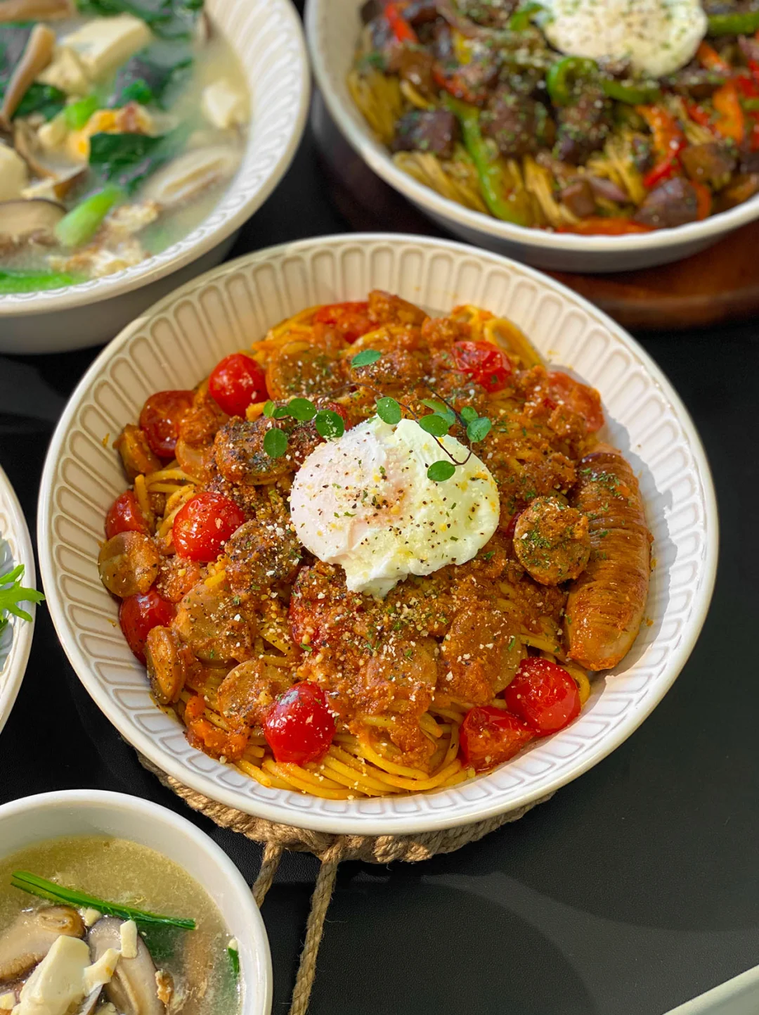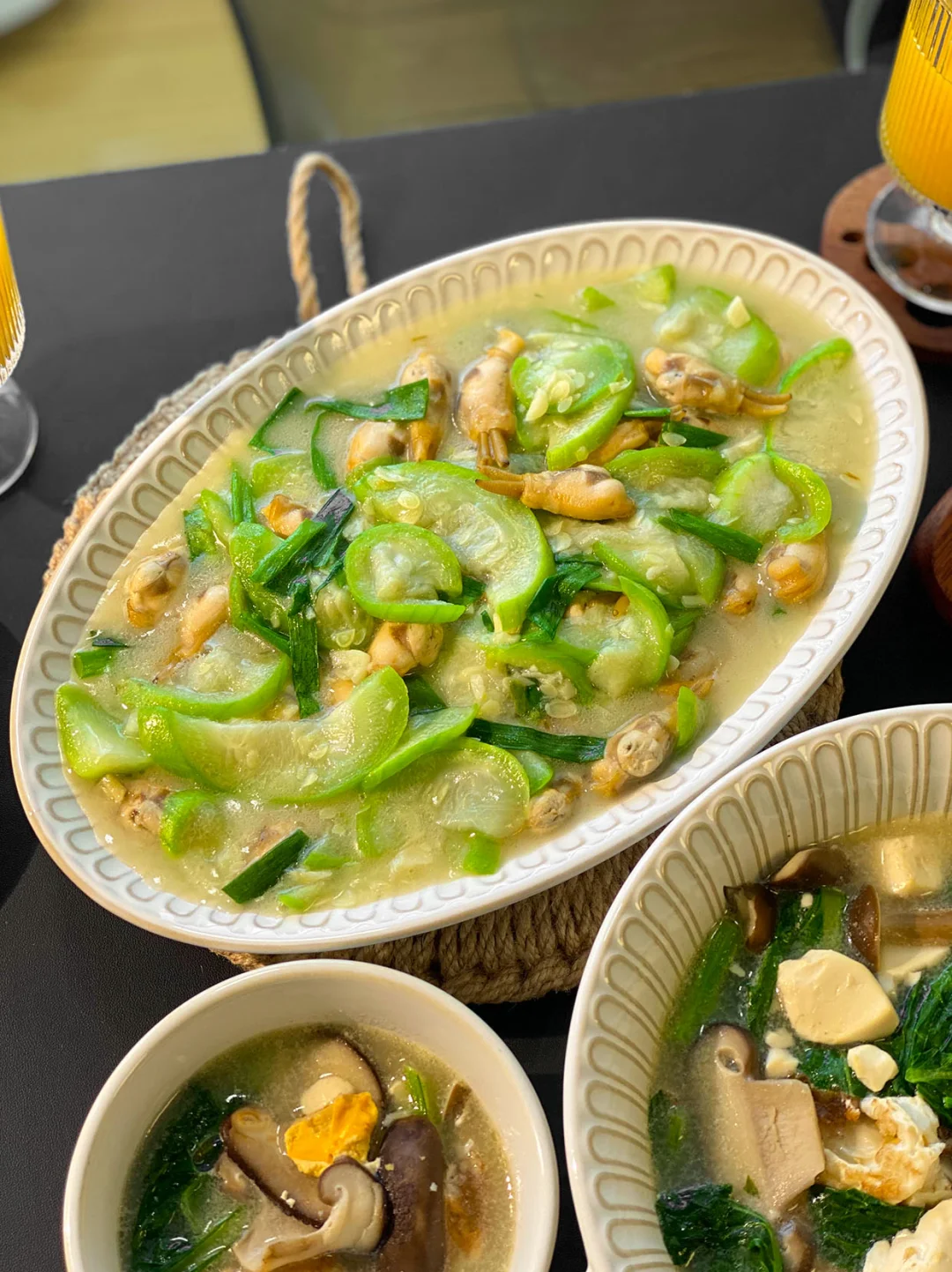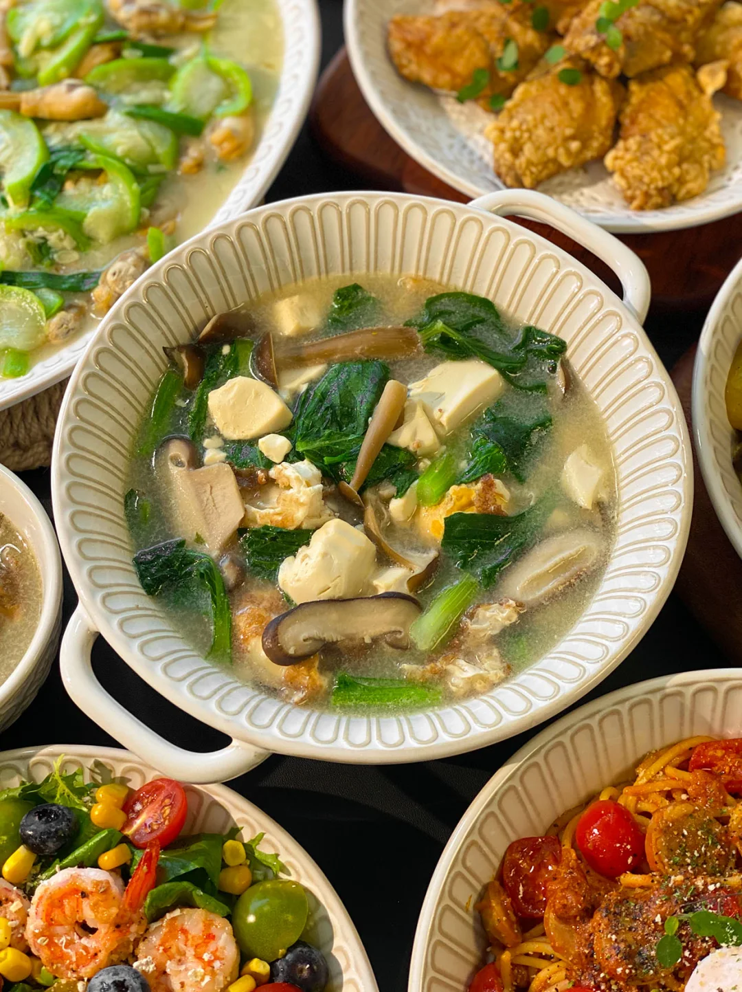 今日菜单🥣: 1️⃣番茄肉酱意面 2️⃣安格斯牛肉意面 3️⃣椒盐鸡翅 4️⃣虾仁沙拉 5️⃣三鲜豆腐汤 6️⃣丝瓜炒蛏子 🧑🍳闺蜜小聚,今天本来想躺平点外卖的,后来想着还是在家做的更干净可口,就简单做了一桌不费劲的菜。 🌟椒盐鸡翅,皮脆肉嫩,一口下去超香。 🌟虾仁沙拉,吃着清爽,搭配意面特别合适。 🌟三鲜豆腐汤,现在这天气喝着太舒服了,热乎乎喝下去,胃里特舒服 🌟丝瓜炒蛏子清爽鲜美 跟亲朋好友小聚,不想特别折腾做饭的宝,真的可以试试这桌!轻松又好吃~