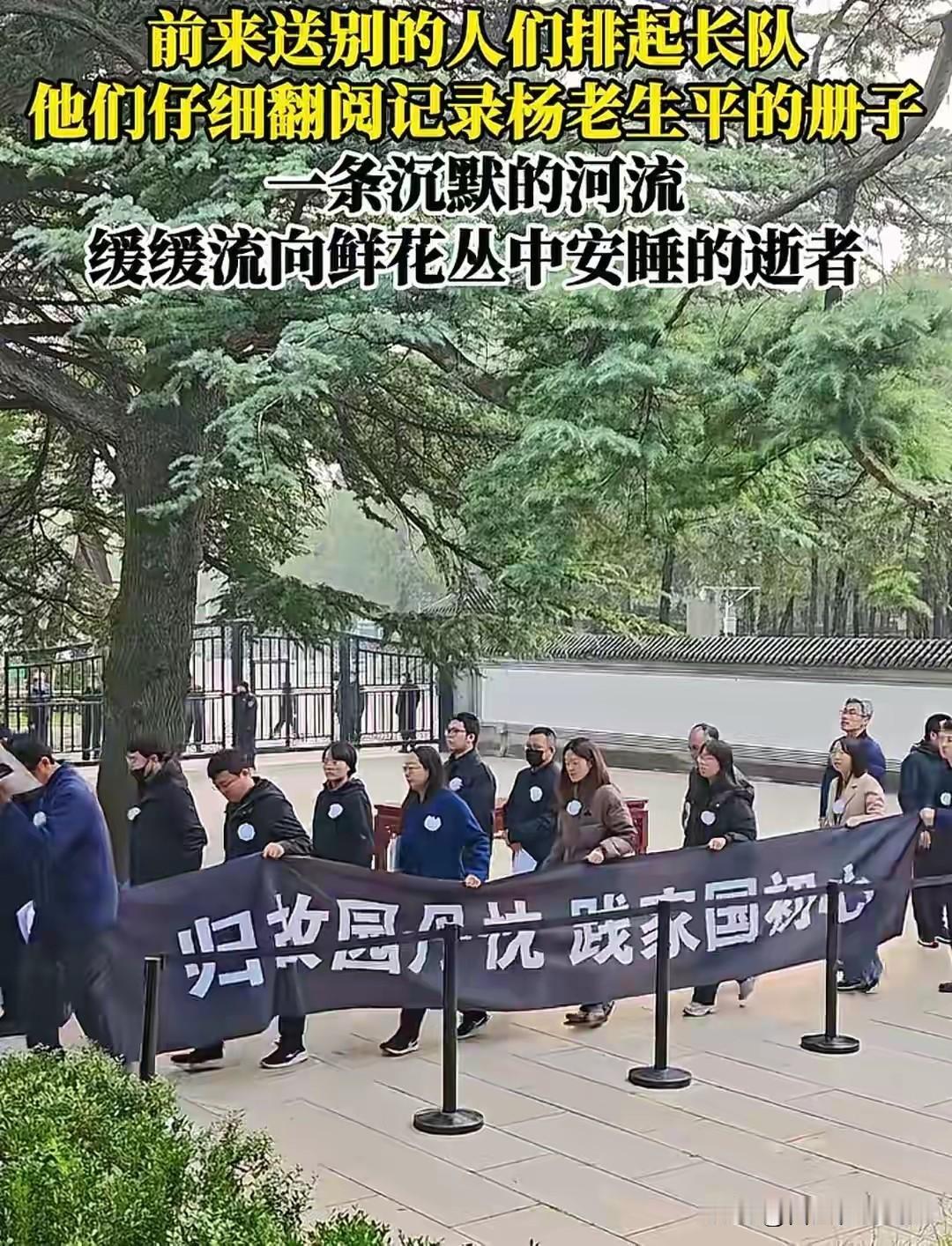 杨振宁身覆国旗,翁帆是家属代表站第一位,重量级好友也到场悼念!杨振宁先生的告别仪式开始了,这样一位“大家”彻底告别了我们,一个时代就此落下了帷幕。 10月24日上午9时,八宝山大礼堂的门缓缓开启,承载着无数人哀思的告别仪式正式开始。那位用理论叩问宇宙、用一生践行赤诚的科学巨擘杨振宁,在此与世界作别。 遗体安卧在鲜花翠柏间,鲜红的国旗覆于其身,这抹庄重的红色,正是对他一生家国情怀最直接的注解。礼堂外的人潮早已排起长队,寒意中没人刻意喧哗,只有脚步声与偶尔的叹息交织。 清华的师生来得最早,他们穿着深色衣物,有的手里捧着自制的悼念卡片,有的默默整理着现场的指引标识。对他们而言,杨振宁不仅是教科书上的名字,更是清华园里亲自授课的教授、推动基础学科发展的前辈,送他最后一程,是敬意更是责任。 人群中既有白发苍苍的学界同仁,也有带着孩子的普通民众,大家或许对“规范场论”一知半解,却都明白这位老者为国家、为科学留下了怎样厚重的财富。 礼堂内场的一侧,家属们静静伫立。翁帆站在最前排,一身黑衣缀着白花,脸上难掩憔悴与悲伤,目光追随着每一位前来悼念的人,轻轻点头致意。她身边是从国外赶回来的杨振宁的子女与后辈,亲人离世的悲痛写在每个人脸上。 那些往来鞠躬的身影中,有相识数十年的老友,有受他提携的晚辈,还有素未谋面却受其影响的陌生人,每一次弯腰,都是对这位大师的最高致敬。 花圈上的落款彰显着这场告别仪式的分量,而身覆国旗的礼遇,早已胜过千言万语。这不是普通的荣誉,是对他一生奉献的认可——认可他在物理领域的开疆拓土,更认可他心系家国的赤子之心。 在无数人的记忆里,杨振宁的名字始终与“伟大”相连,但直到他离去,人们才更清晰地读懂这份伟大背后的坚守与深情。 前来送行的好友中,86岁的钢琴家刘诗昆的身影格外引人注目。 刘诗昆专程从外地赶来北京,只为送老友最后一程。两位泰斗级人物跨越学科的友谊,早已成为一段佳话。他们曾在闲谈中碰撞思想,在岁月里相互陪伴,如今天人永隔,这份情谊也成了留在时光里的温暖印记。 而更多未能到场的好友,早已在最后时光里与他告别。南开大学葛墨林院士透露,杨振宁生命的最后一个月,身体状态已极度危重,无法正常沟通,翁帆便用小白板写下字句,帮他传递心意。 回望杨振宁的一生,是一部物理学的开拓史诗。20世纪中叶,他与李政道共同提出“弱相互作用中宇称不守恒”理论,彻底颠覆了物理学界的传统认知,让他在1957年成为最早斩获诺贝尔奖的中国人之一。 更令人惊叹的是他与罗伯特·米尔斯共创的“杨-米尔斯规范场论”,这份被视作能与麦克斯韦方程、爱因斯坦广义相对论比肩的理论,为现代粒子物理标准模型筑牢了根基,影响至今仍在延续。 在统计物理、凝聚态物理等多个领域,他留下的“杨-巴克斯特方程”等成果,至今仍是学者们探索的方向。这样的学术高度,足以让他在人类科学史上占据一席之地。 可杨振宁的伟大,从不止于实验室与公式。特殊年代里,身在大洋彼岸的他始终眷恋着祖国,用尽一切机会架起中西方学术交流的桥梁。1971年,他冲破阻碍首次回国,此后便持续资助近百位中国学者赴美进修,这些人后来大多成为中国科技发展的中坚力量。 晚年定居清华园,他更是把全部心血倾注在教育事业上,亲自为本科生讲授普通物理,哪怕年过九旬仍坚持备课、授课,用“宁拙毋巧,宁朴毋华”的风骨感染着每一位学生。 他提议加强基础科学研究,推动高等研究院建设,为中国科教事业的发展奔走呼号,用实际行动诠释了“科学没有国界,但科学家有祖国”的深意。 曾几何时,公众对他不乏误解,有人纠结于他的个人选择,有人忽视他的默默奉献。直到他离去,那些被时光尘封的故事才渐渐浮出水面:他把自己的积蓄捐给科研与教育事业,他为引进顶尖人才四处奔波,他在病床上仍牵挂着清华的发展。 人们这才明白,这位科学巨擘从未停下为国奉献的脚步,他的家国情怀,与他的学术成就一样,早已融入血脉。从少年时在清华园萌发对物理的热爱,到晚年在“归根居”里心系科研,杨振宁的一生画成了圆满的圆。 从祖国出发,站上世界巅峰,最终落叶归根。他身上有着中国知识分子最动人的特质:既有叩问宇宙的科学精神,又有胸怀家国的赤子情怀;既有引领时代的学术远见,又有谦逊质朴的人格魅力。那些写在教科书上的公式,那些为祖国培养的人才,那些跨越国界的友谊,都是他留给世界的宝贵财富。 杨振宁先生已经远行,但他留下的科学火种与精神光芒,永远不会熄灭。这光芒,会照亮学子们的探索之路,会温暖科研者的前行脚步,更会提醒每一个人:真正的大师,既要能仰望星空探索真理,更要能心怀故土践行担当。杨振宁先生做到了,这份风骨与情怀,终将被永远铭记。