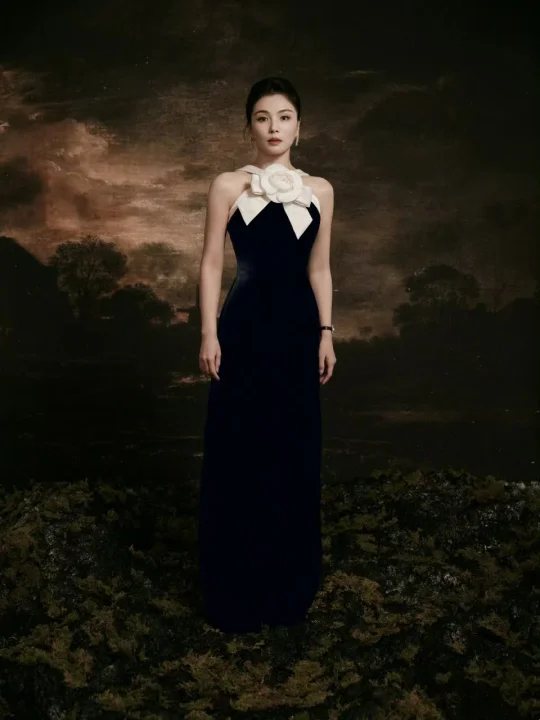 黑裙美人行,风姿似月华。