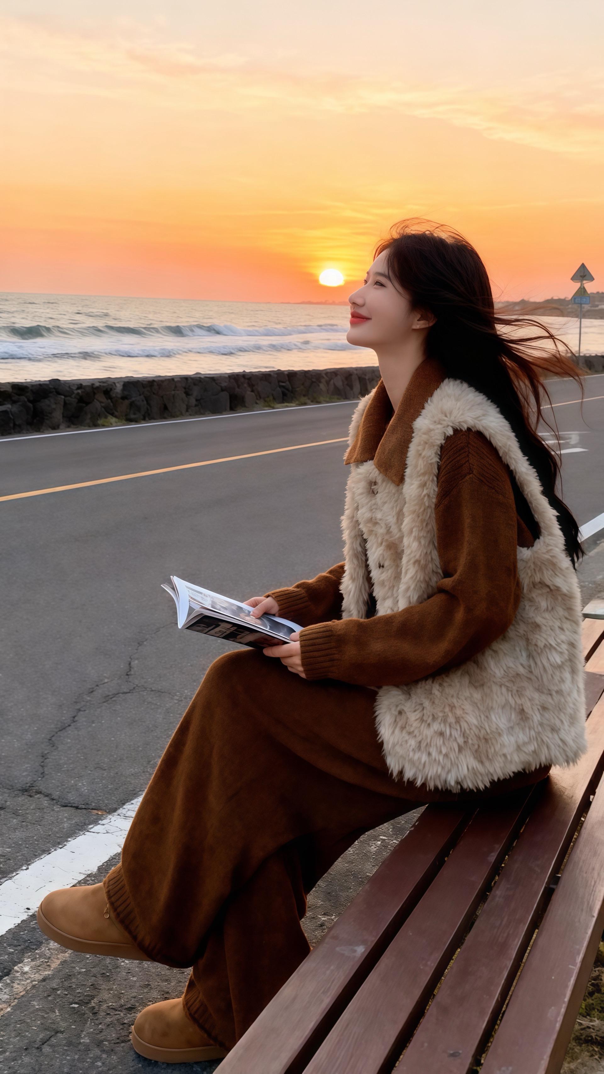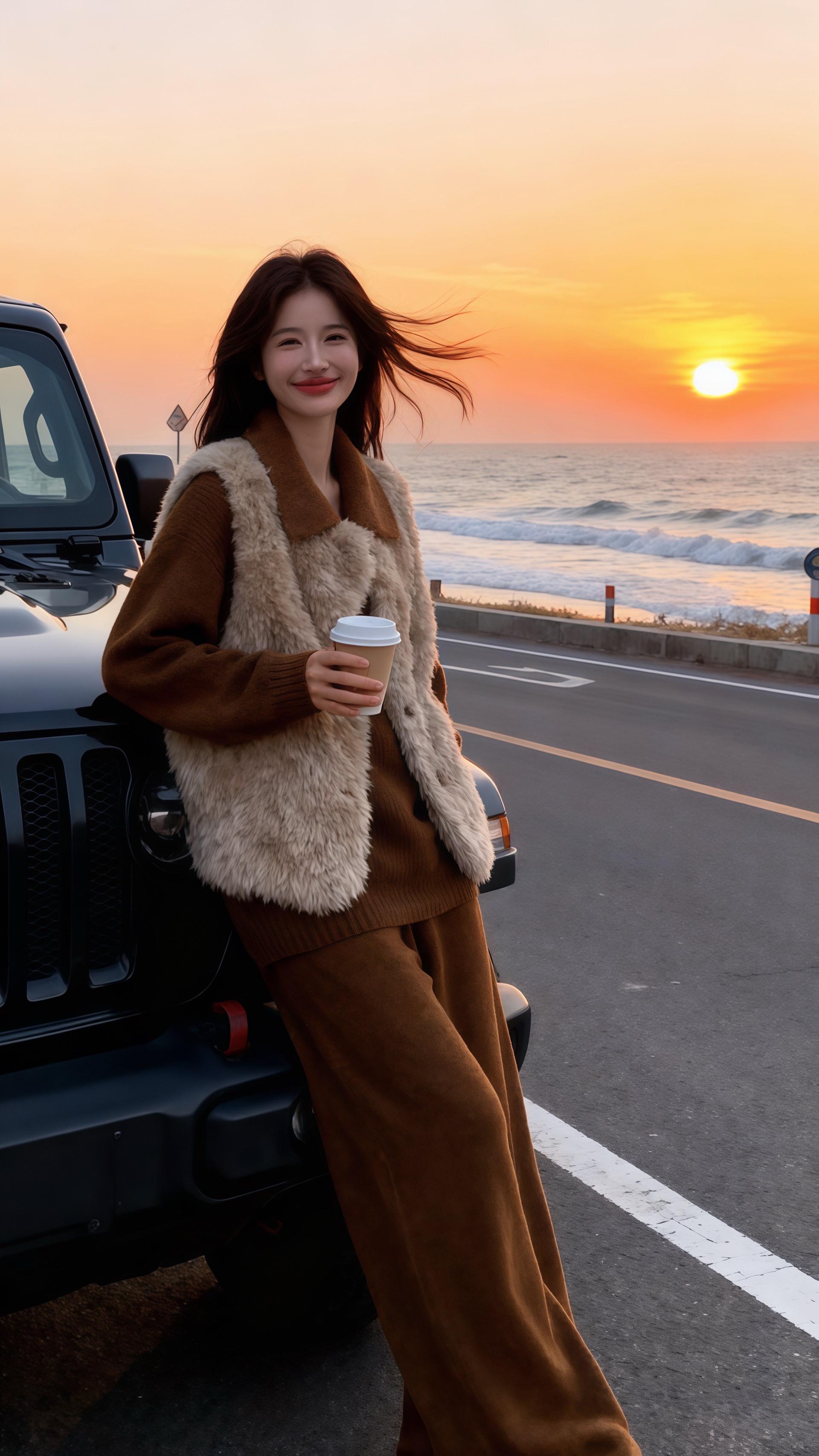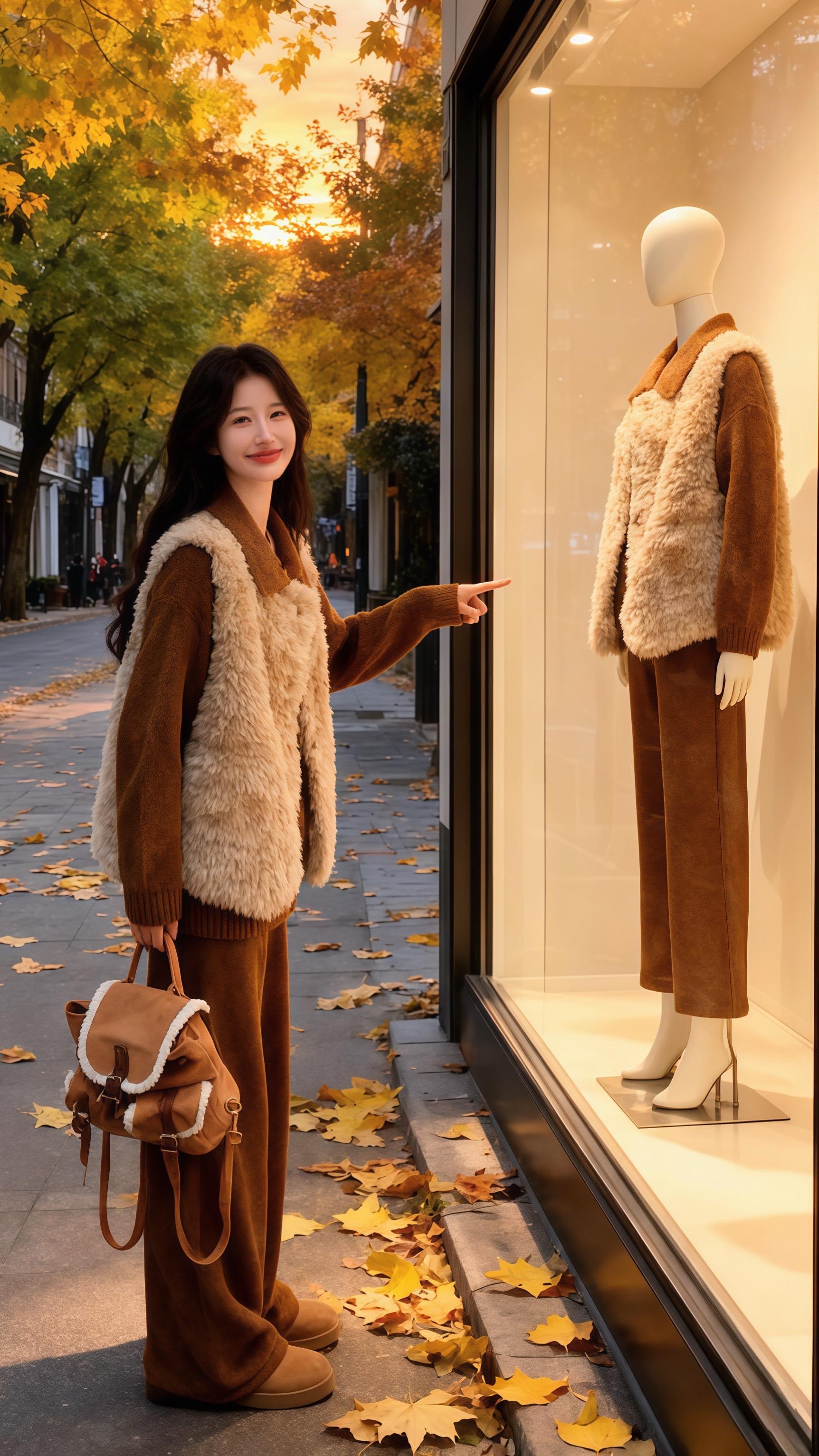 《秋日穿搭:从都市橱窗到海边日落,她把温柔穿成了诗》 深秋的都市街头...