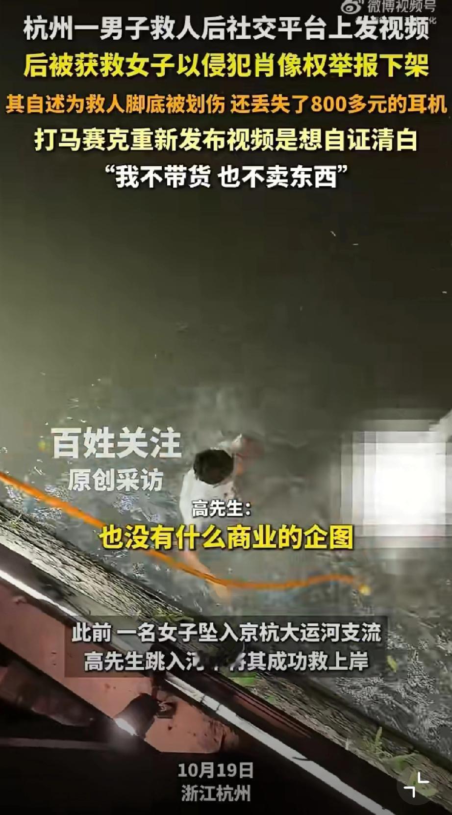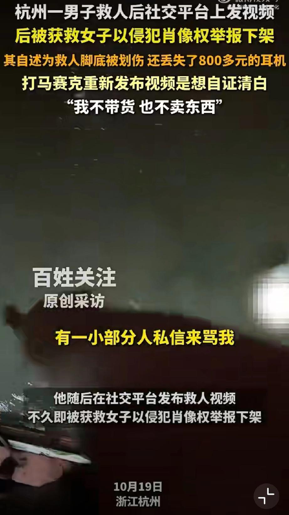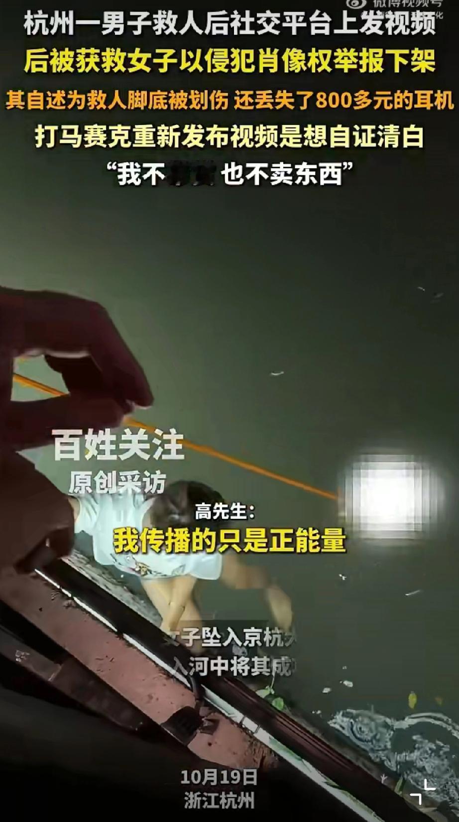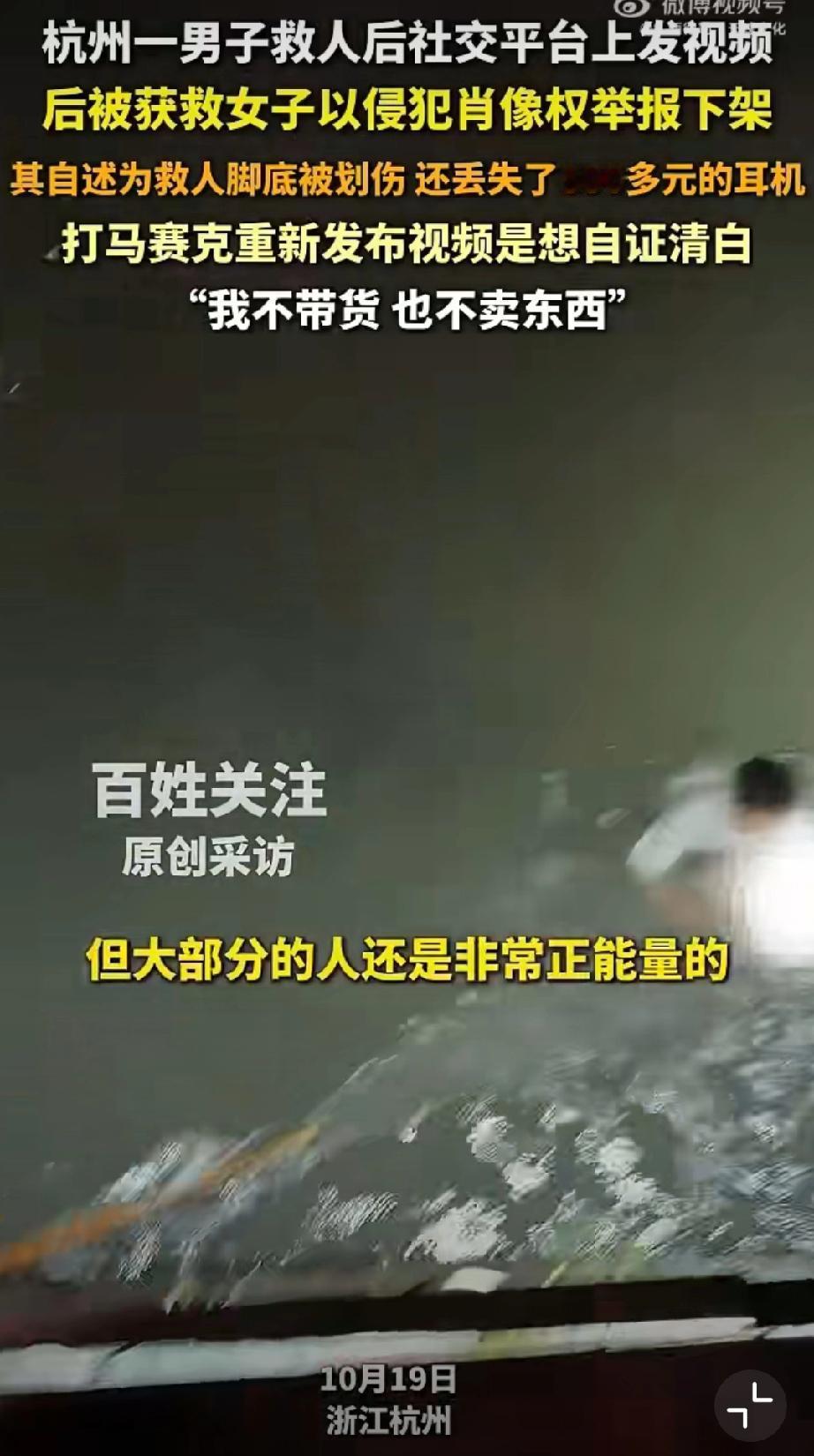 太离谱了,男子救落水女子却要道歉[捂脸] 媒体鼓弄这种新闻,不亚于当初南京彭宇案啊…落水女子被见义勇为的男子救起,却以“侵犯肖像权”为由向平台举报,导致视频被强制下架。其实那个视频拍得不清晰,面部都识别不了女子是谁,女子却认为可通过体貌、衣着等特征识别身份,媒体也一个劲的支持她…难道肖像权的价值比生命权还要高吗?张博,你说对么?南京救人小伙 小伙水中救人 救人反被举报