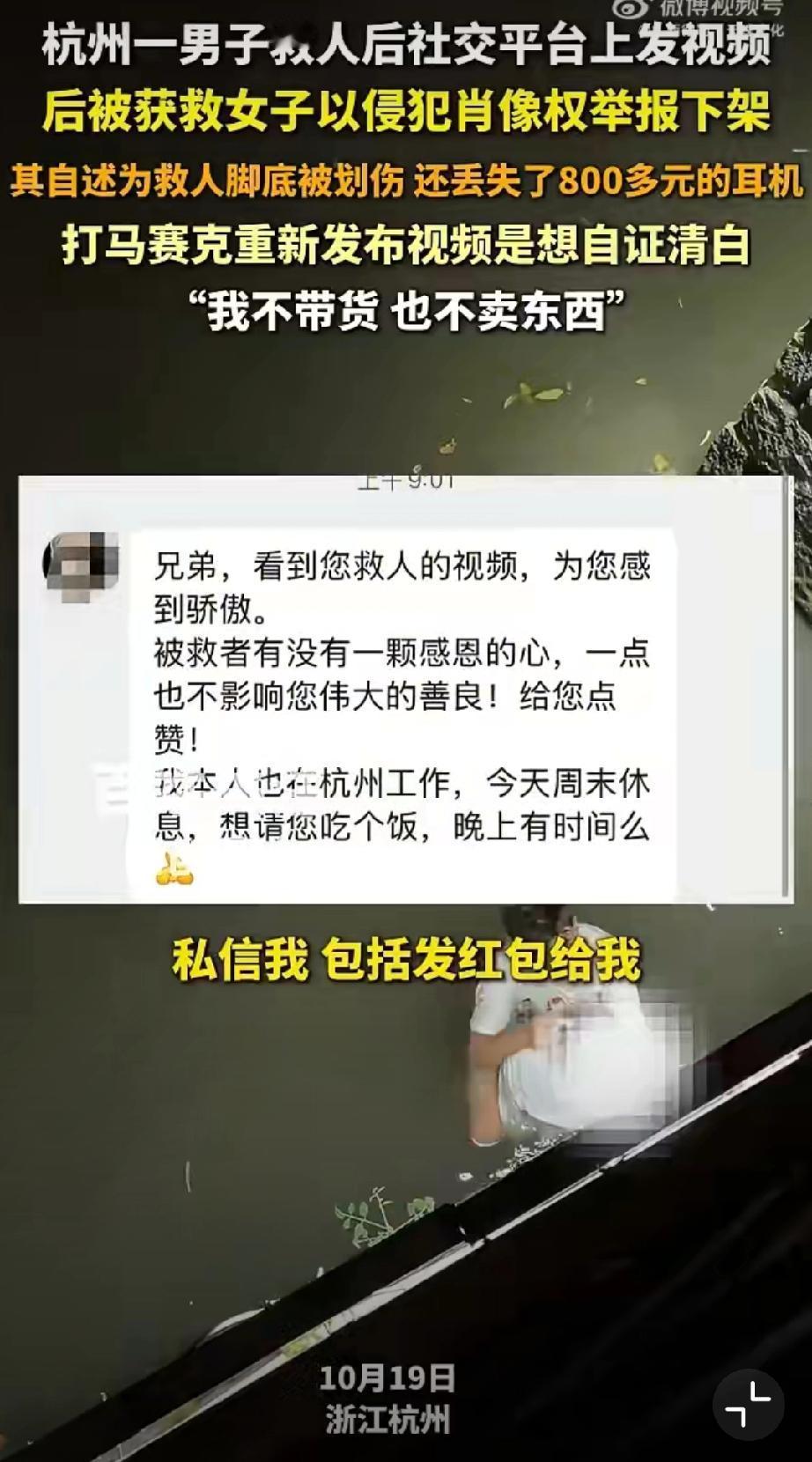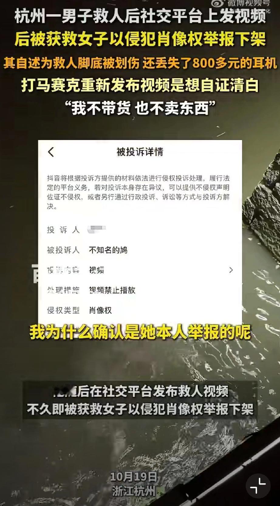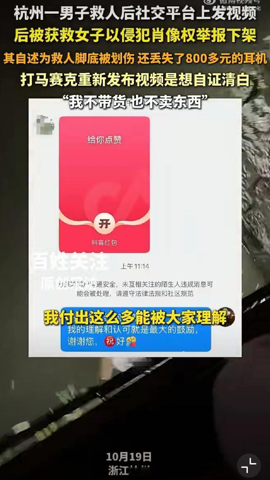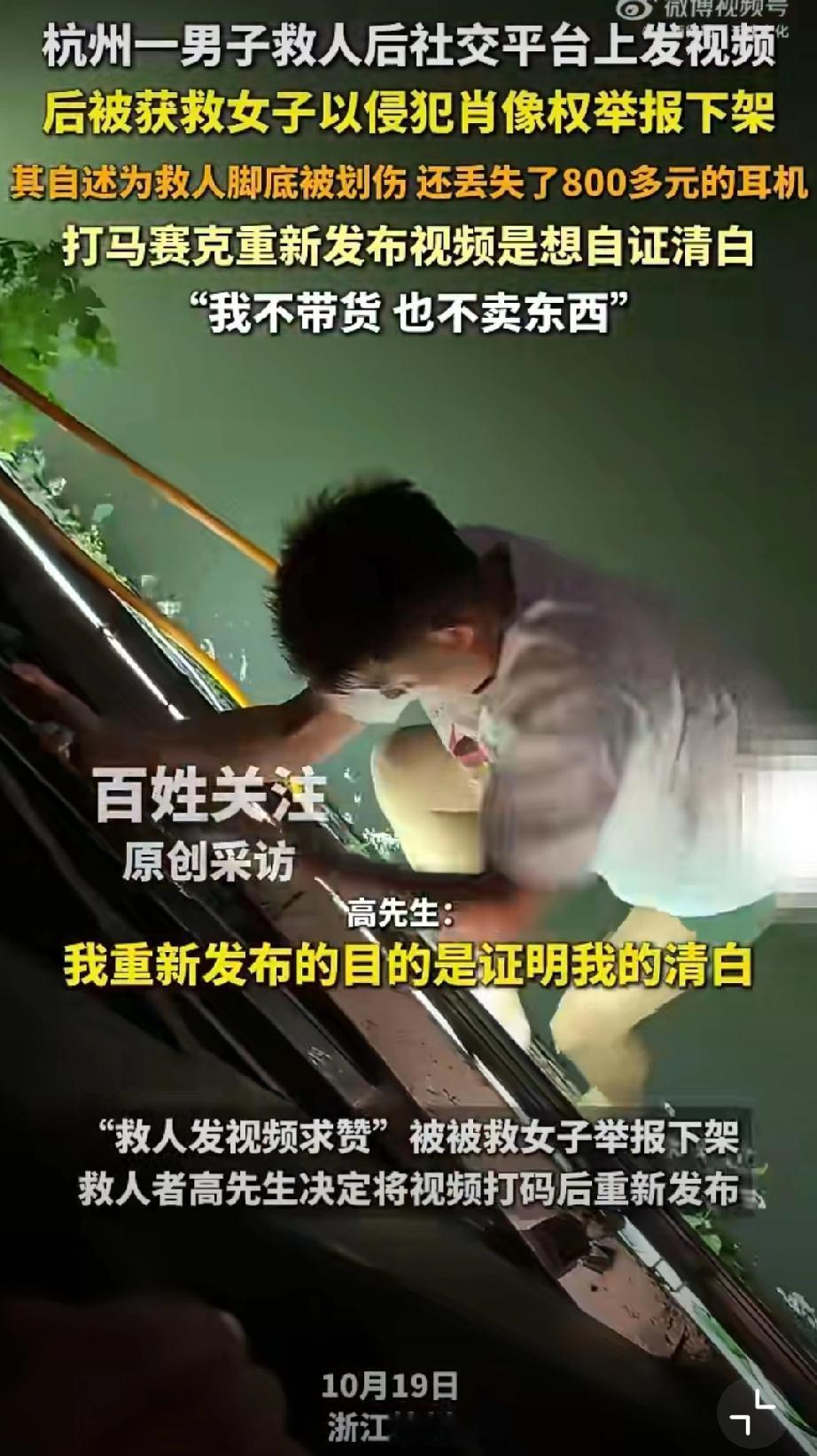 太离谱了,男子救落水女子却要道歉[捂脸] 媒体鼓弄这种新闻,不亚于当初南京彭宇案啊…落水女子被见义勇为的男子救起,却以“侵犯肖像权”为由向平台举报,导致视频被强制下架。其实那个视频拍得不清晰,面部都识别不了女子是谁,女子却认为可通过体貌、衣着等特征识别身份,媒体也一个劲的支持她…难道肖像权的价值比生命权还要高吗?张博,你说对么?南京救人小伙 小伙水中救人 救人反被举报