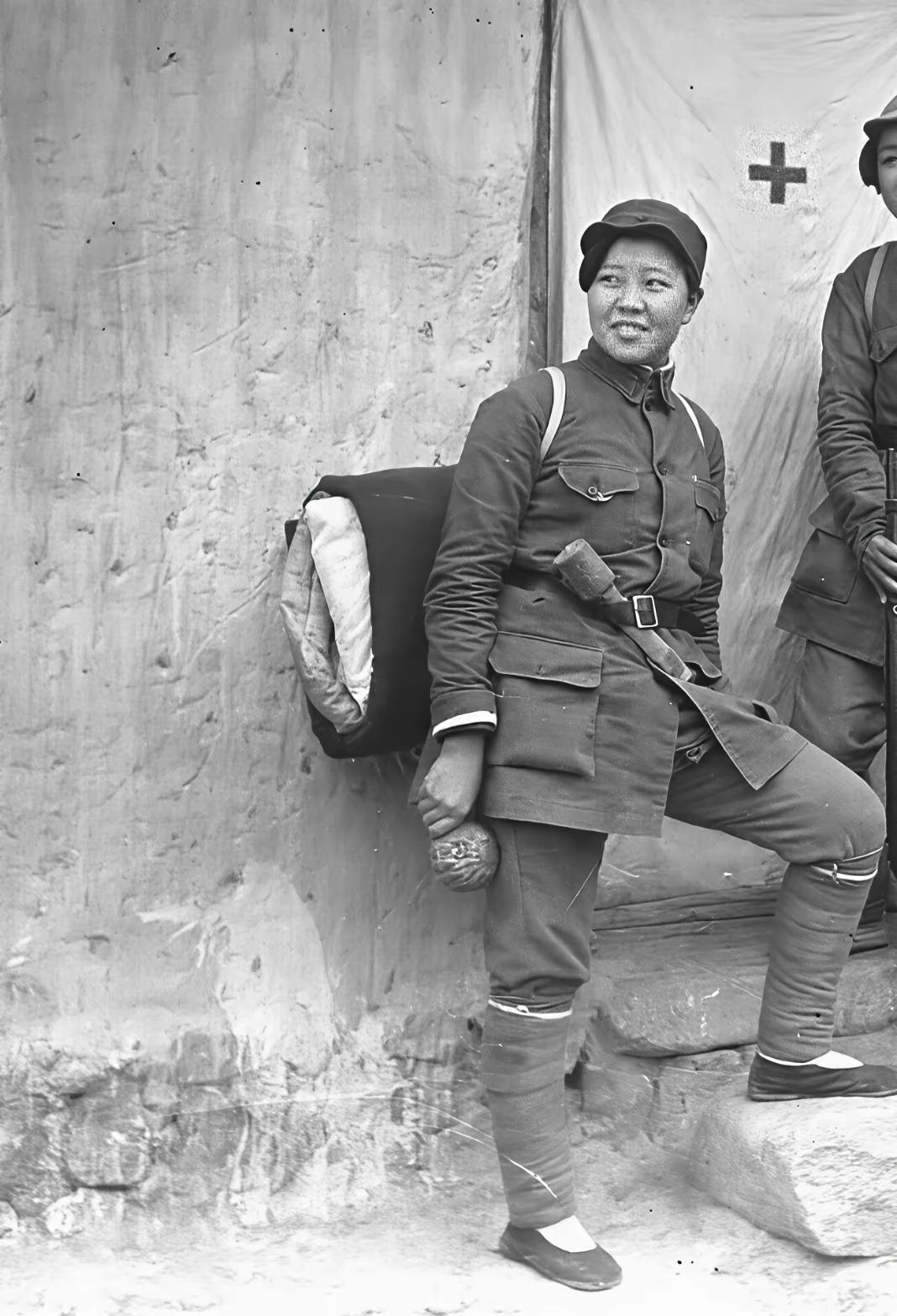 这是摄影师在战场上拍到的一个八路军女兵。这才是最真实的八路军女兵,跟电视剧上那种打扮得干干净净、涂着艳丽的口红、喷着发胶的女八路完全不一样。你们看她背着一床简单的被子,随时可以打包转移。最令人钦佩的是她腰间插着一枚手榴弹,这是一枚“光荣弹”,如果战场上万一她不小心被日军捉住,她立马拉响这颗“光荣弹”与敌人同归于尽!佩服这位女八路。老照片