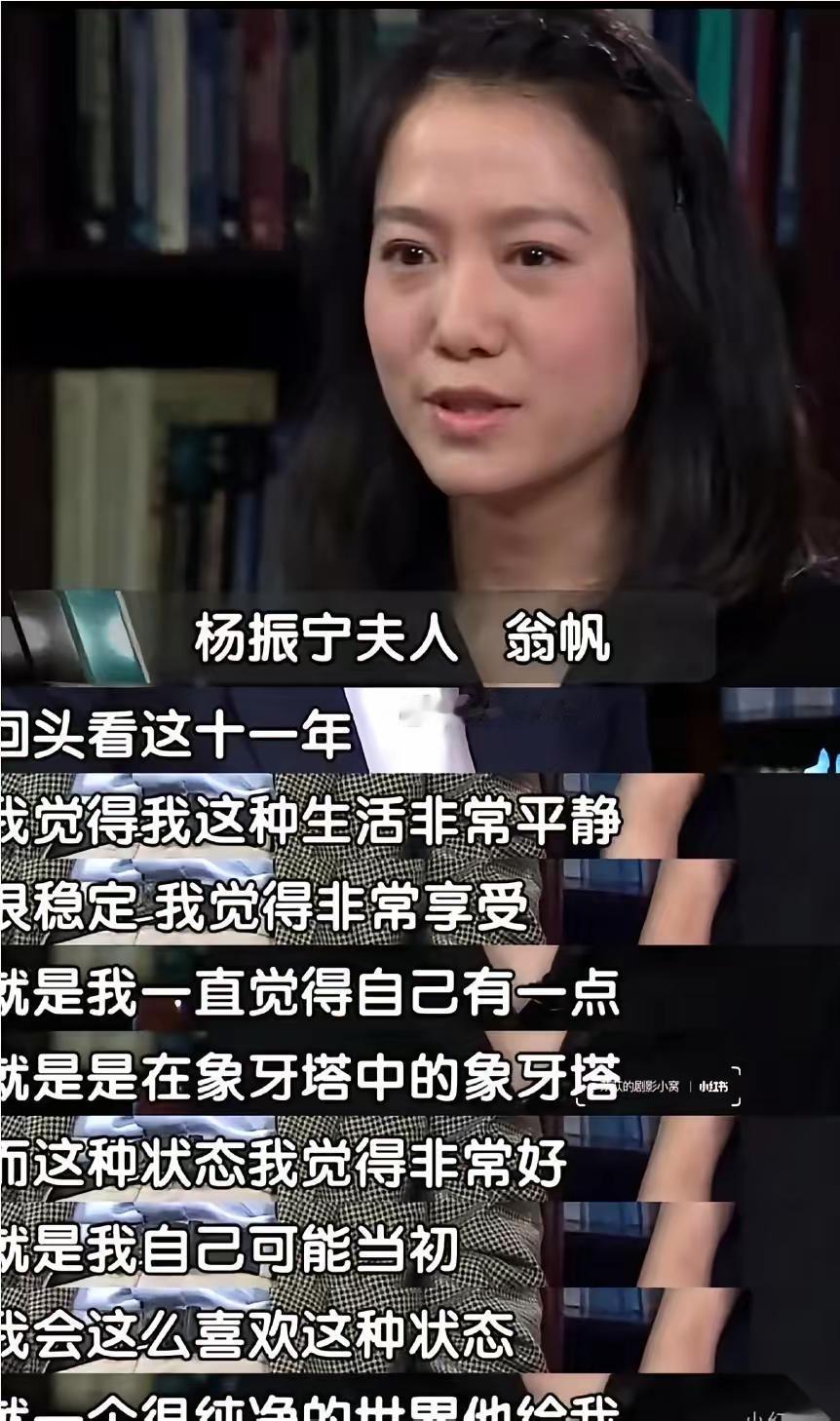 从前总不解翁帆的选择,毕竟她与杨振宁的年龄差距太过刺眼,难免揣测她图些世俗之物。直到读了她写下的文字,才懂这份选择的内核——她求的从不是外物,而是一份“象牙塔中的象牙塔”般的纯净 ,是能远离鸡零狗碎与人情世故,安安静静看书、灵魂被全然懂得的境界。 我们多数人困在生活的枷锁里:活在旁人的议论里,活在KPI的压力里,活在房贷车贷的算计里,更活在“到年纪该做什么”的规训里。而翁帆,在杨振宁塑造的纯净世界里 ,一头扎进了知识的宇宙,守着一个顶配的有趣灵魂相伴二十余年。如今杨振宁已然离去,但她曾被这份“美好的罗曼史”浸润 ,被生命的带路人重塑内核 ,这般精神上的富足,早已是人生的大赢。