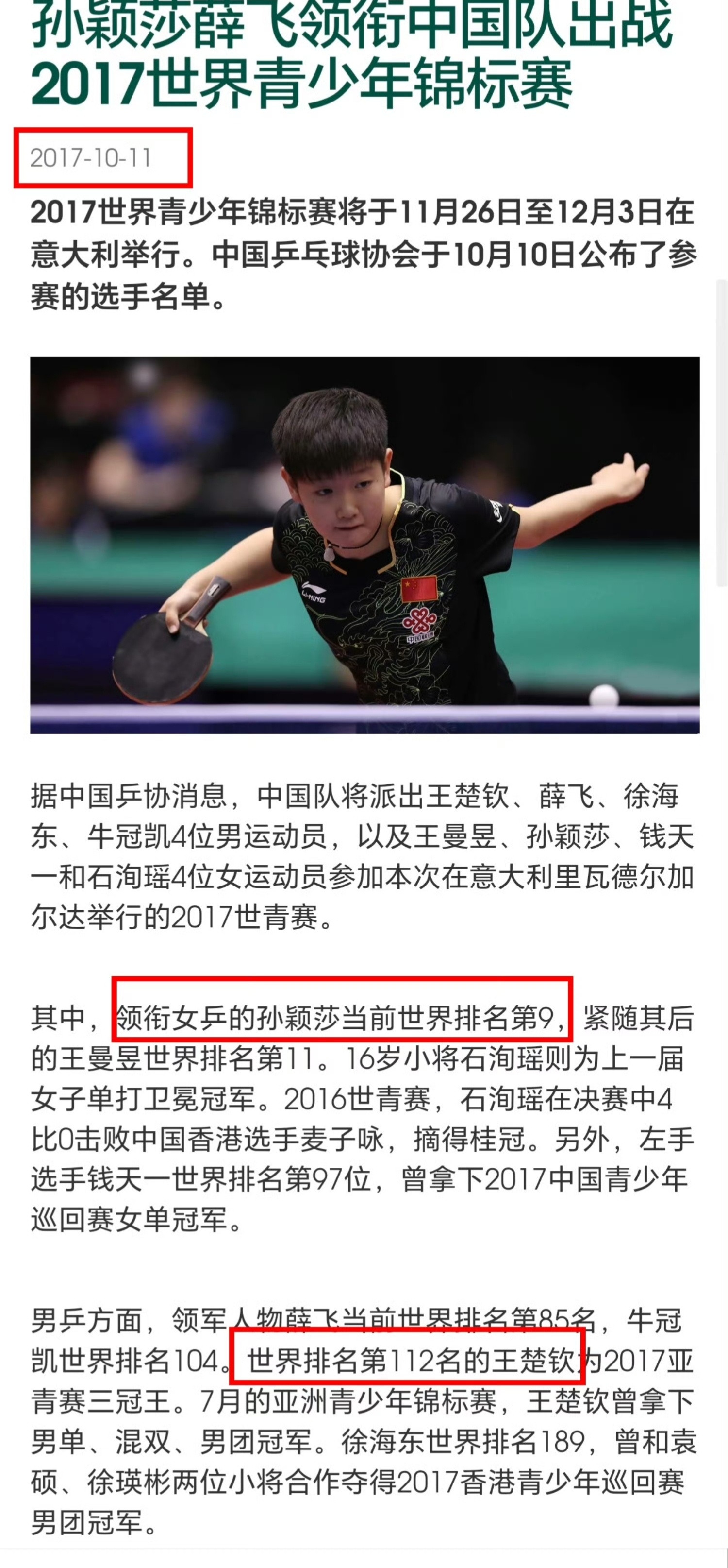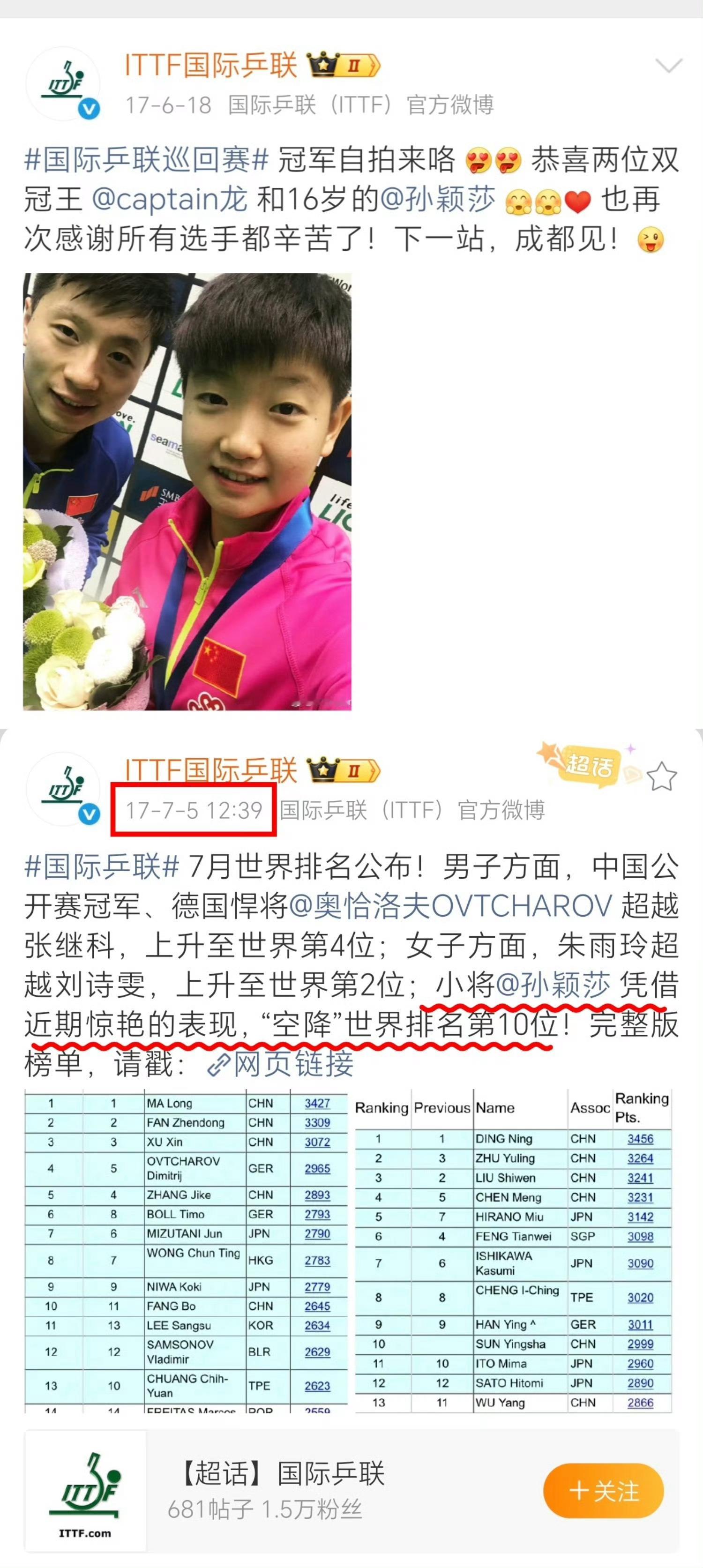 孙颖莎王楚钦又有新称号了孙颖莎2017日本公开赛双冠出道的时候就得到了这个荣誉了,16岁一鸣惊人国际赛首次出道即白金双冠,空降世排前十!