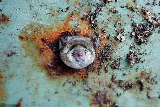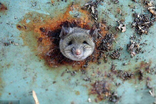 一只老鼠,头被卡在了垃圾箱里。。。。画面居然有点萌。。连狗都过来看热闹。。。纽约消防局最后把它救了出来。。是的老鼠。。救了。。