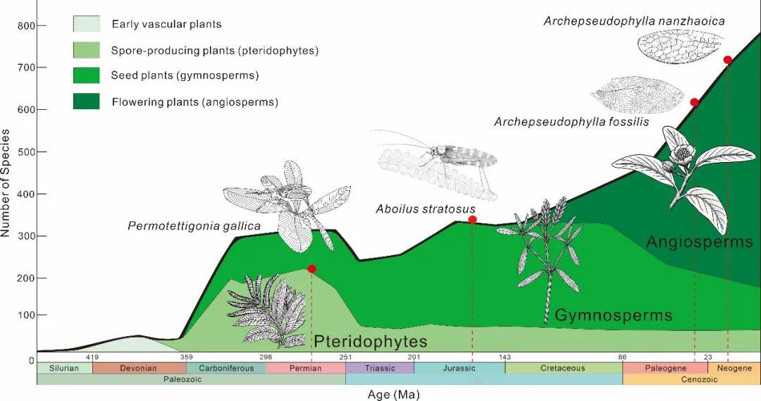 但道虎沟的发现却特别珍贵!这是科学家第一次在同一个化石层中同时找到拟态昆虫和被模仿植物的实体证据,就像拿到了一个封存1.65亿年的"生态现场"。这些古老鸣螽翅膀上的斑纹,不仅是一套求生装备,更记录了生物与环境之间那场持续了亿万年的演化对话。科学大院