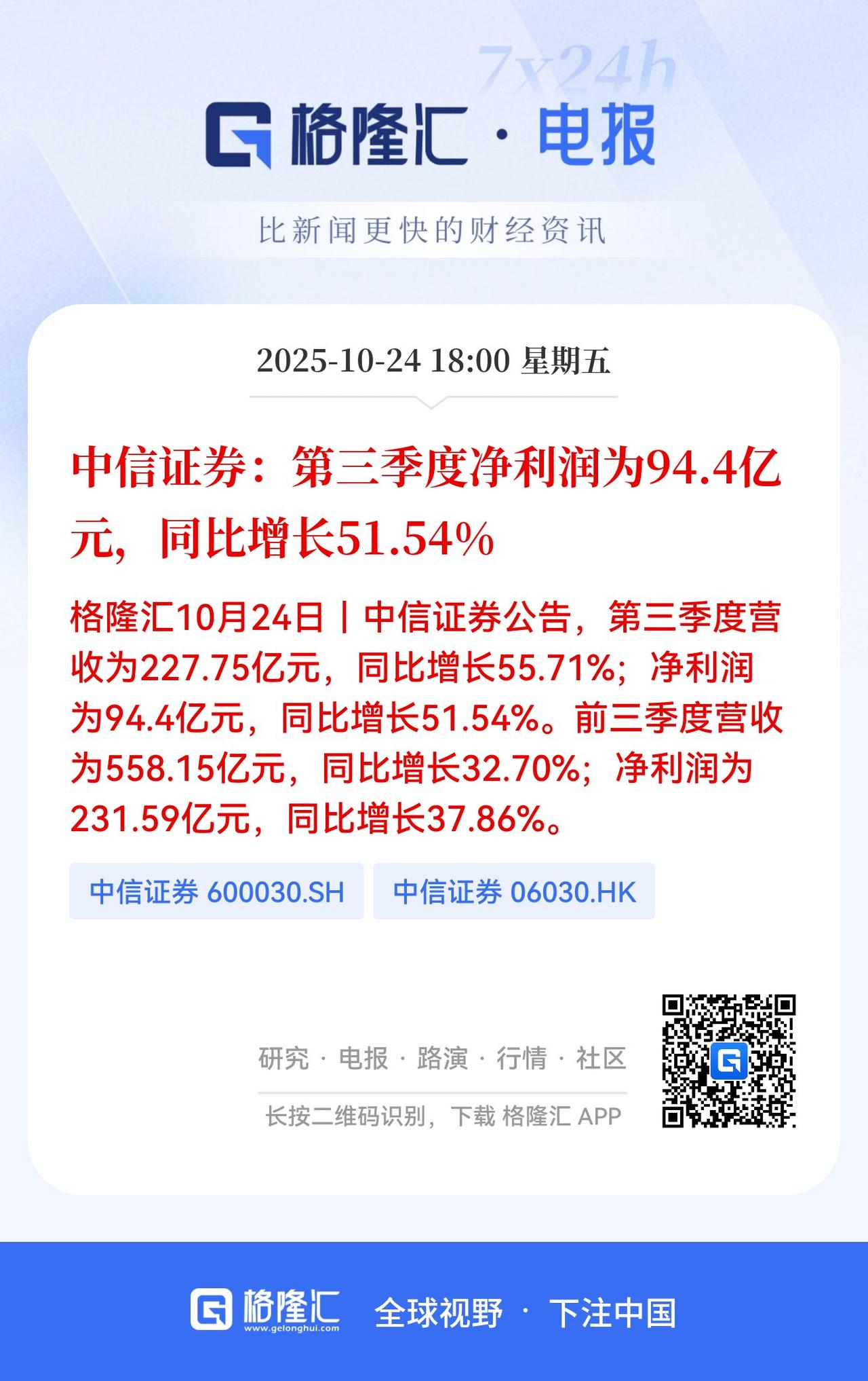 兄弟们!盘后又是两个大利好,看来今天A股的大涨只是开胃菜,下周一继续大涨的可能性非常大了。 第一个大利好,就是央行宣布下周一投放9000个亿的流动性,这无疑有助于继续助力A股大涨。 盘后央行发布公告,称为保持银行体系流动性充裕,2025年10月27日(周一),中国人民银行将以固定数量、利率招标、多重价位中标方式开展9000亿元MLF操作,期限为1年期。 央行开展9000亿元MLF操作,不就是相当于给市场投放9000个亿的流动性吗? 市场有了流动性的支持,水多起来了,还怕船不高吗? 所以央行的这个开展9000亿元MLF操作,应该是为下周一A股的继续大涨来了一个锦上添花。这是第一个大利好。 第二个大利好消息就是券商龙头中信证券三季报公布,盈利大幅增长,大超预期。这无疑对于拉动指数大涨是一个重大刺激了。 盘后中信证券发布第三季度的业绩公告,内容显示,公司第三季度实现营业收入227.75亿元,同比增长55.71%;归属于母公司股东的净利润94.40亿元,同比增长51.54%。 营业收入和净利润纷纷大幅增长超过50%,环比二季度也是大幅增长。 这样的业绩不是相当的炸裂吗? 这样好的业绩,不得大幅增加市场多头的信心?而一旦中信证券能大涨,上证指数不得大涨? 众所周知,近期汪汪队为了能让市场走慢牛,经常放大单压中信证券。今天又是收盘的收盘压了一笔10个亿的大单子。 为什么要这么做? 答案显而易见,不就是怕券商管不住,直接带飞了指数吗? 这样就容易导致疯牛了。要不是,近期一直压着券商,上证指数怕是早就突破4000点了。 现在中信证券发布了这么炸裂的三季报,那下周一券商还能压的住吗? 我想答案大家都清楚了。 所以这两个消息无疑是有望继续引导下周一A股继续长虹,大家觉得呢?