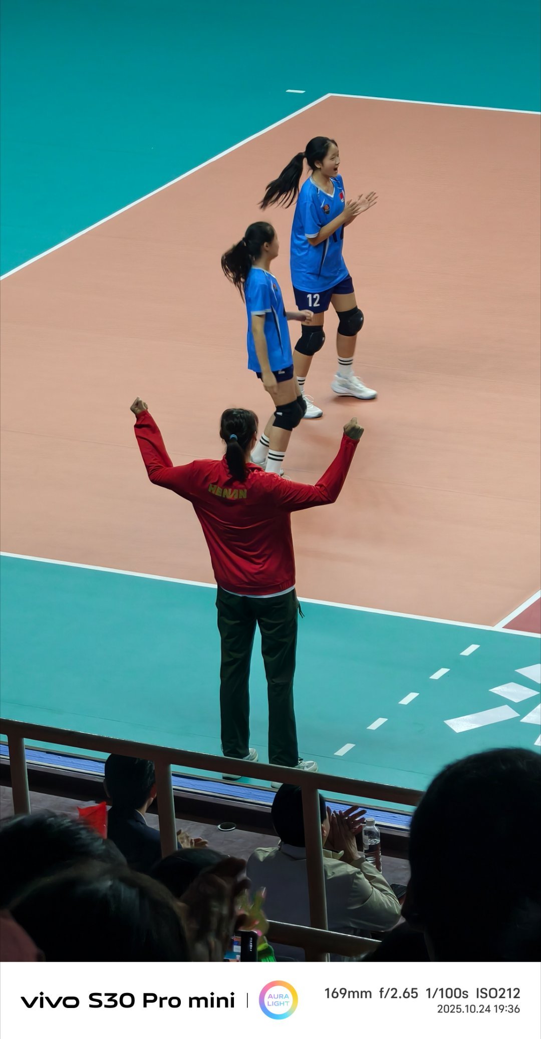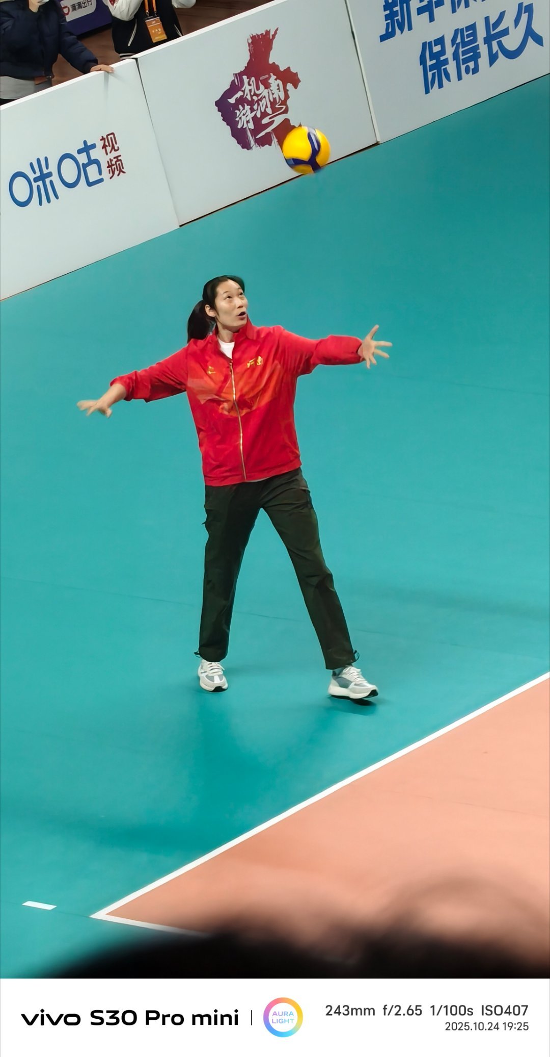 朱婷空降豫排联赛郑州主场表演赛是有点玄学在里面的,朱婷现场当指导,还给表演赛开球,结果三小节比分都是10比7,颇有点运筹帷幄的感觉![doge]河南女排八强争霸朱婷现场助力