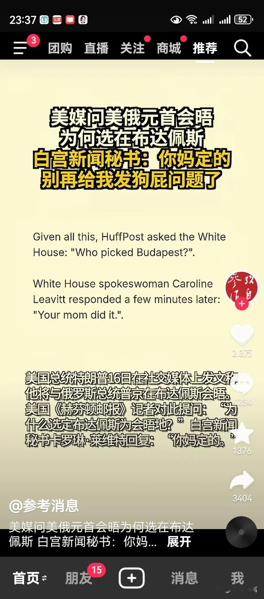 美国最近真的是让全球人类见识了他们素质低下,一个国家新闻发布人说出如此之话,简直是无耻无德! 美国新闻发布会上,一名记者提问关于美俄两国元首会晤之事,新闻发布会人回答到:你妈定的,不要在给我发狗屁问题了! 这是什么狗屁新闻发言人,素质低下,没有文化,和特朗普一样,包括以前副总统,还有国防部长等人员都出现类似问题。 难怪全球都是离美国越来越远,这样的国家谁愿意进行交往,没有一个大国和个人应有的素质,只会走向衰败。 美国是从哪个总统开始强起来的