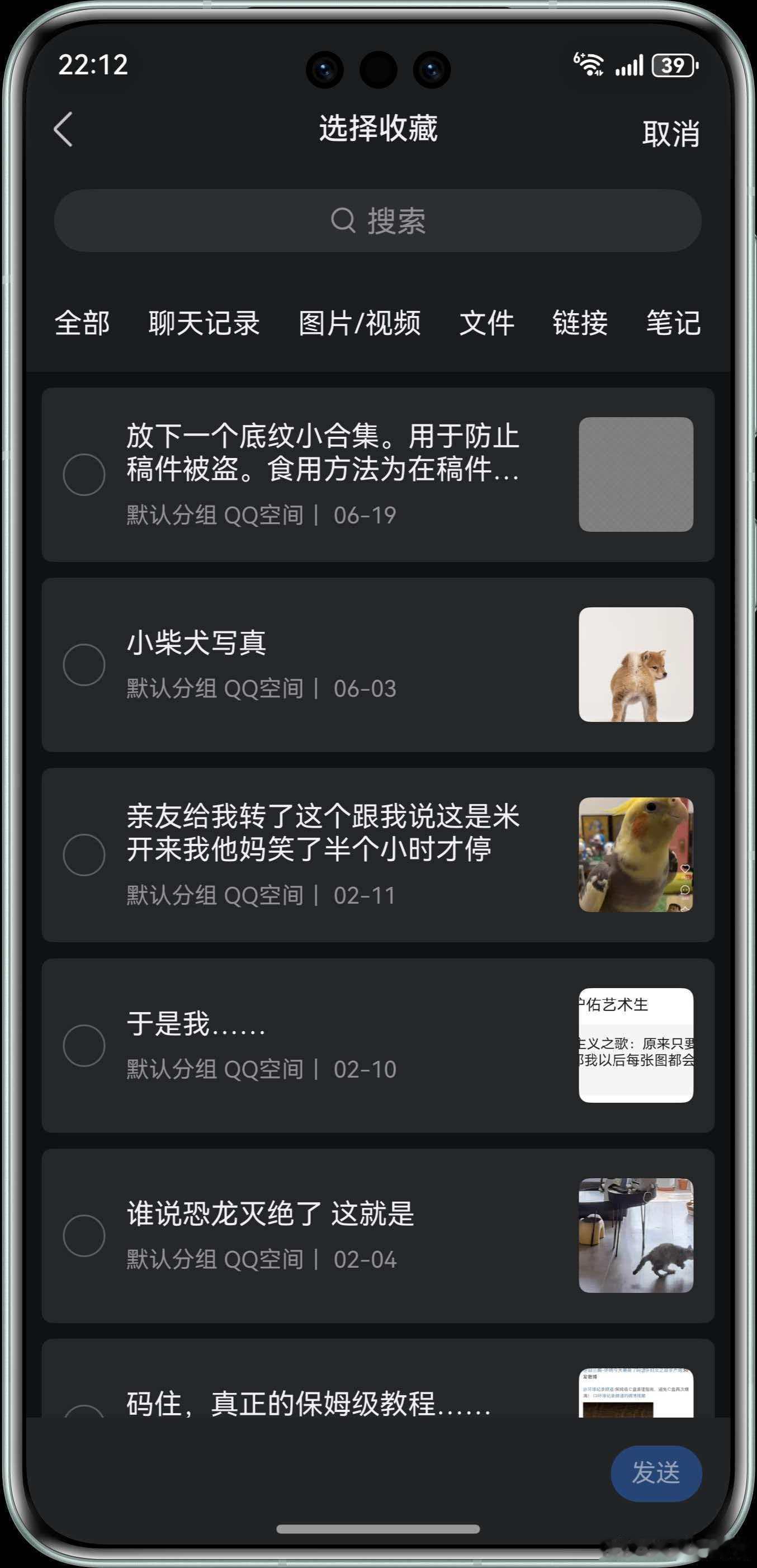 8、聊天支持发送收藏内容