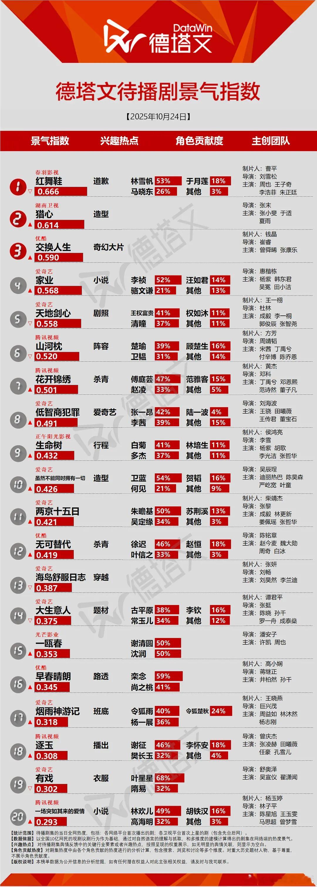 天地剑心 明天中午12点就播了,待播剧景气指数才0.5+榜5不妙啊~