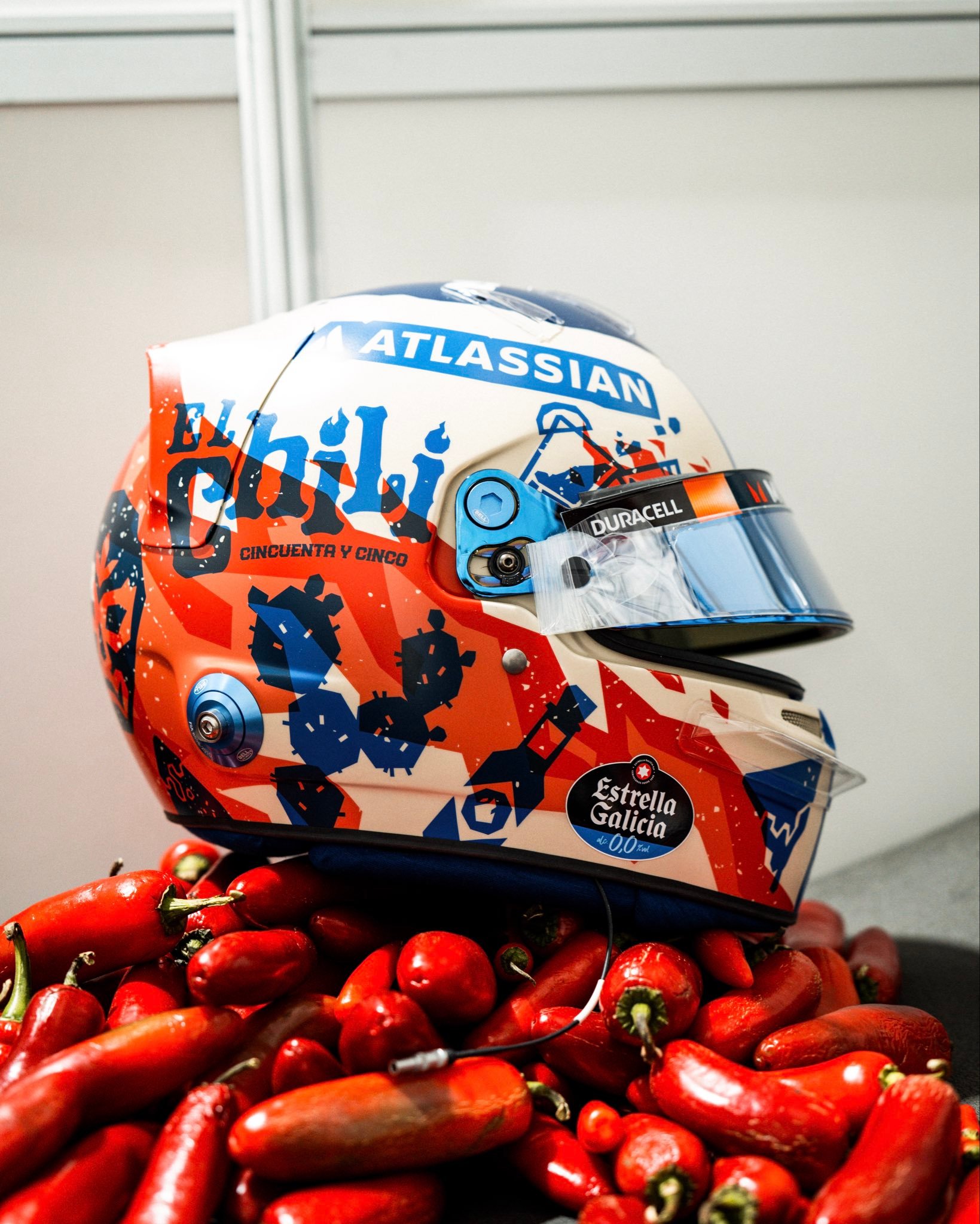 威廉姆斯车队车手赛恩斯本周带来特别版赛车头盔🌶🌶🌶