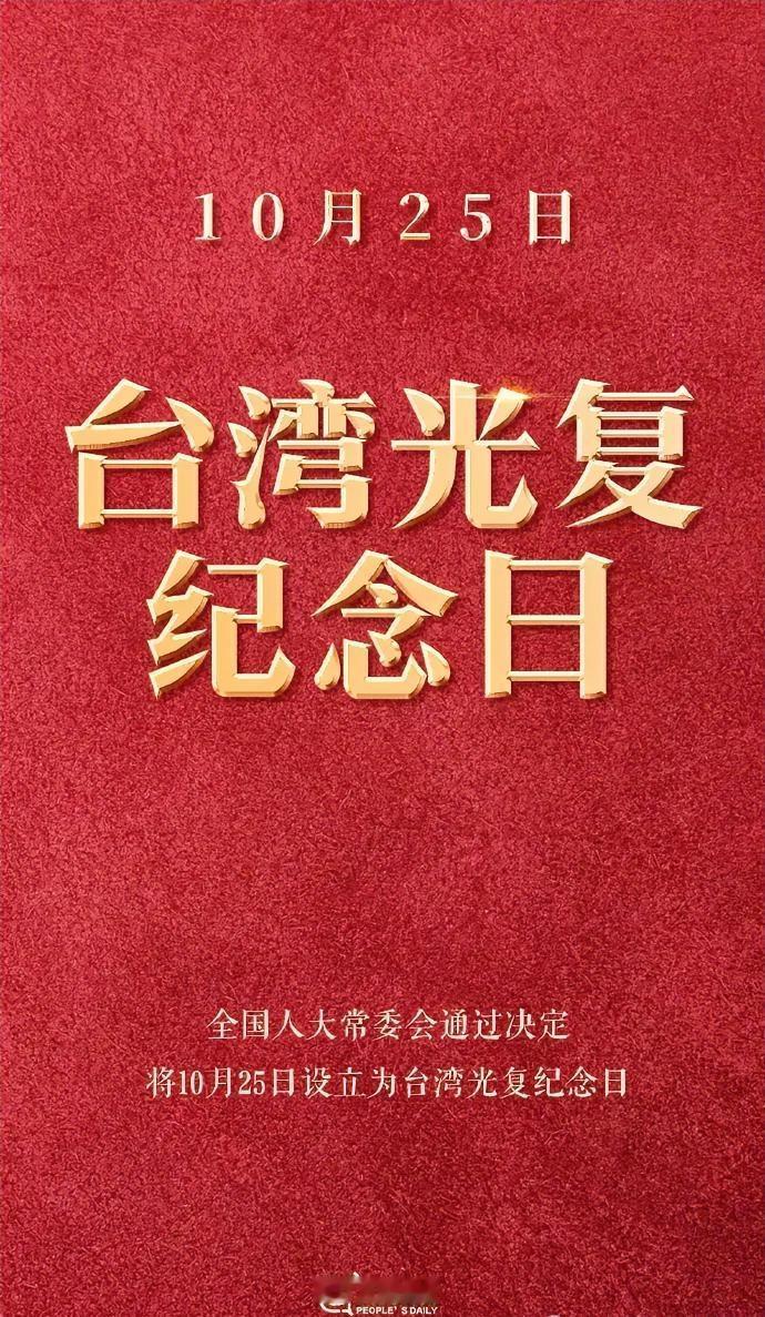 全国人大常委会正式表决通过,将10月25日确定为台湾光复纪念日。这意味着从今年起,这个日子将载入史册,国家将以多种形式开展纪念活动。 为什么要在这个时间点设立纪念日? 表面看是个法定程序,实则意味深长。1945年10月25日,台湾结束日本50年殖民统治,回归祖国怀抱。这段历史,老一辈刻骨铭心,年轻人却未必熟知。 在我看来,设立纪念日至少传递了三层深意: 第一,给历史一个正式“身份证” 历史需要被铭记,更需要被确认。用法律形式固定这个日子,相当于给这段历史一个官方认证。就像家里重要的日子要记在日历上一样,国家把台湾光复日写在法律里,就是要让所有人知道:这是我们必须共同记住的历史。 第二,给现实一面“照妖镜” 如今岛内有人刻意淡化这段历史,甚至美化殖民统治。设立纪念日,就像在迷雾中点亮一盏灯,让历史的真相照亮现实。记住日本殖民时期的苦难,才能更懂得回归的可贵;了解来时的路,才能看清未来的方向。 第三,给未来一个“指南针” 纪念不是为了沉溺过去,而是为了更好地前行。两岸同胞同根同源,这个纪念日可以成为情感连接的纽带。通过共同缅怀历史,增进理解,凝聚共识,为两岸关系发展积蓄正能量。 特别值得关注的是,这个决定出台的时机颇具深意。在当前形势下,它传递出明确信号:无论风云如何变幻,历史的真相不容篡改,国家统一的信念坚定不移。 其实,设立纪念日不只是官方的仪式,更是我们每个人的事。它提醒我们:家的记忆需要共同守护,民族的未来需要携手开创。每一次纪念,都是对初心的回望;每一次回望,都是为了更好地前行。 记住历史,不是要延续仇恨,而是要珍惜和平;设立纪念日,不是要制造隔阂,而是要寻求共识。因为只有知道从哪里来,才能明白要往哪里去。台湾解放纪念碑 台湾回归手册 台湾光复