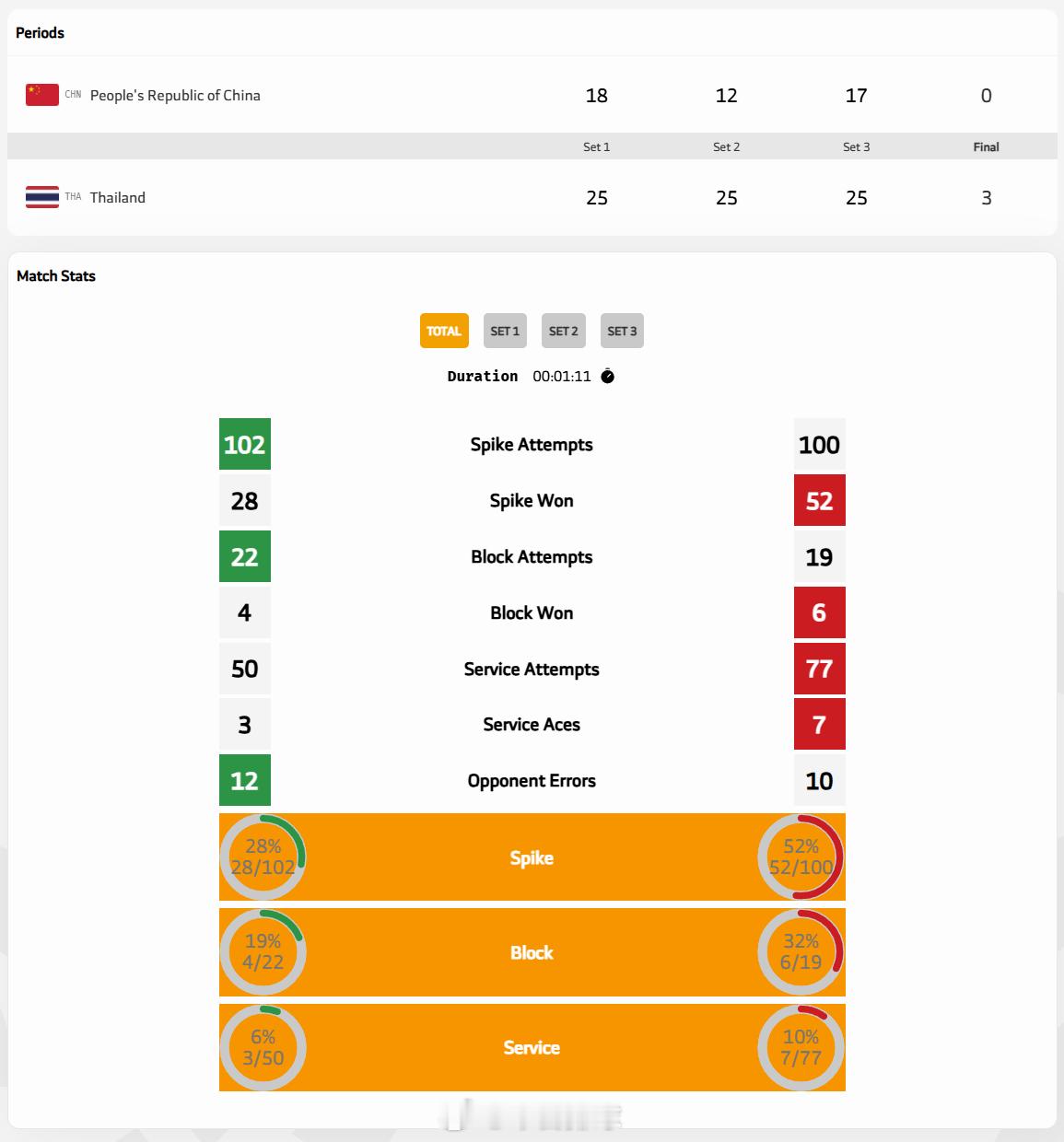 2025年亚洲青年运动会 女排前八复赛第2轮F组,中国队刚刚以0-3(18-25, 12-25, 17-25)不敌泰国队。