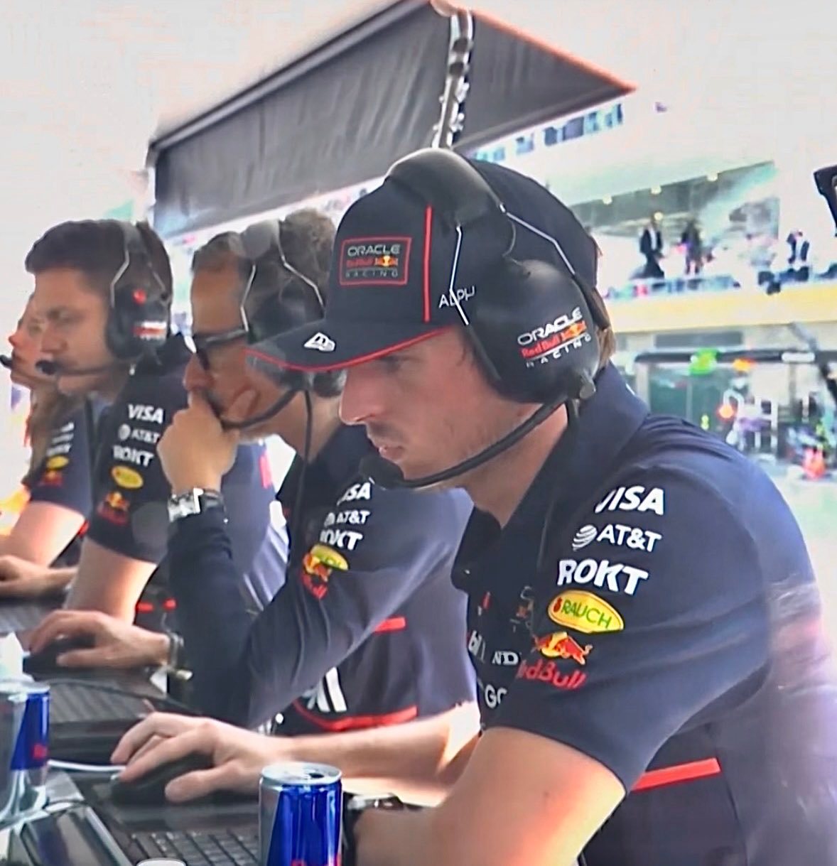 哈哈哈哈哈 FP1坐在车队指挥台上的“汽车人”维斯塔潘[doge]