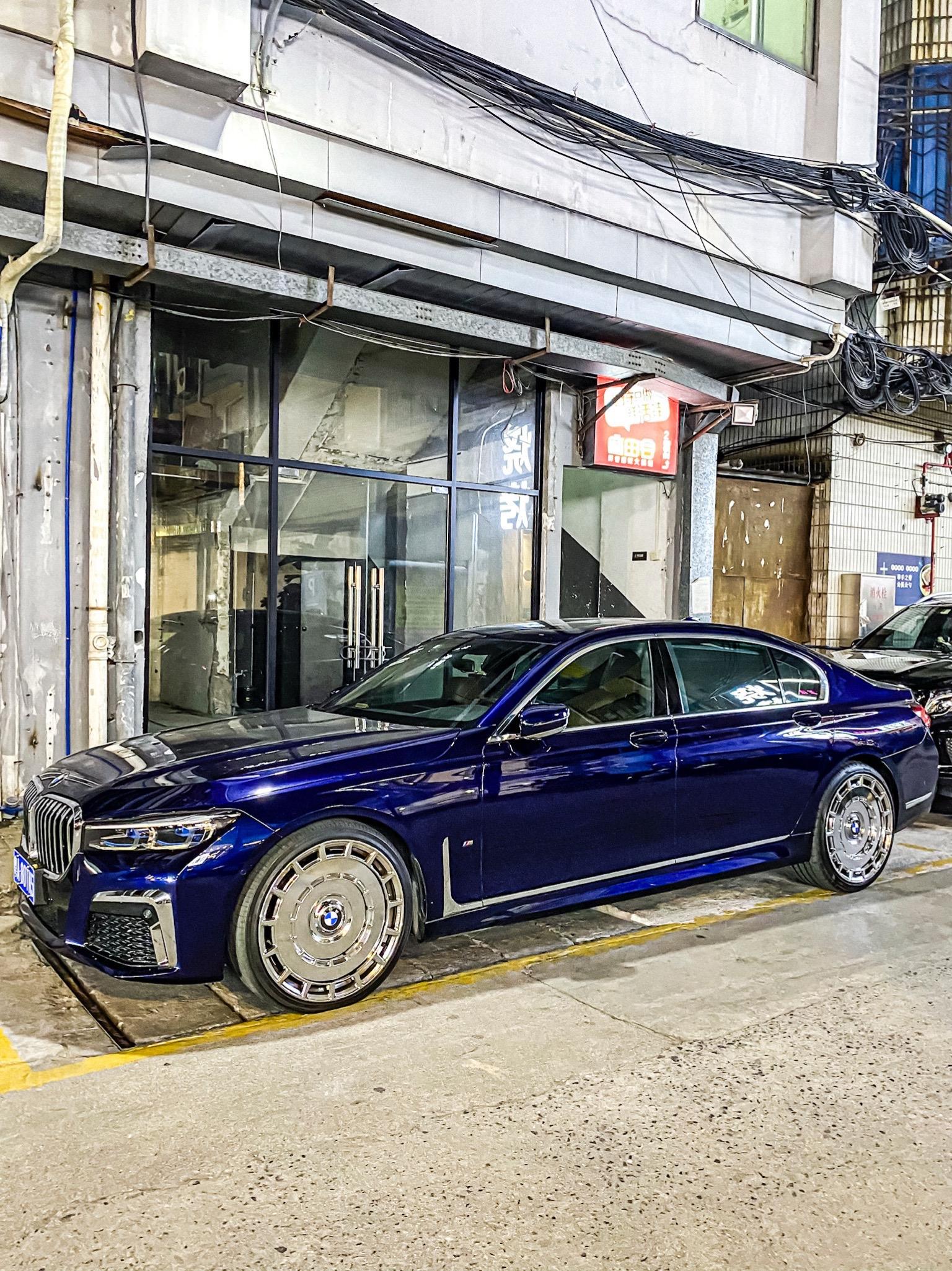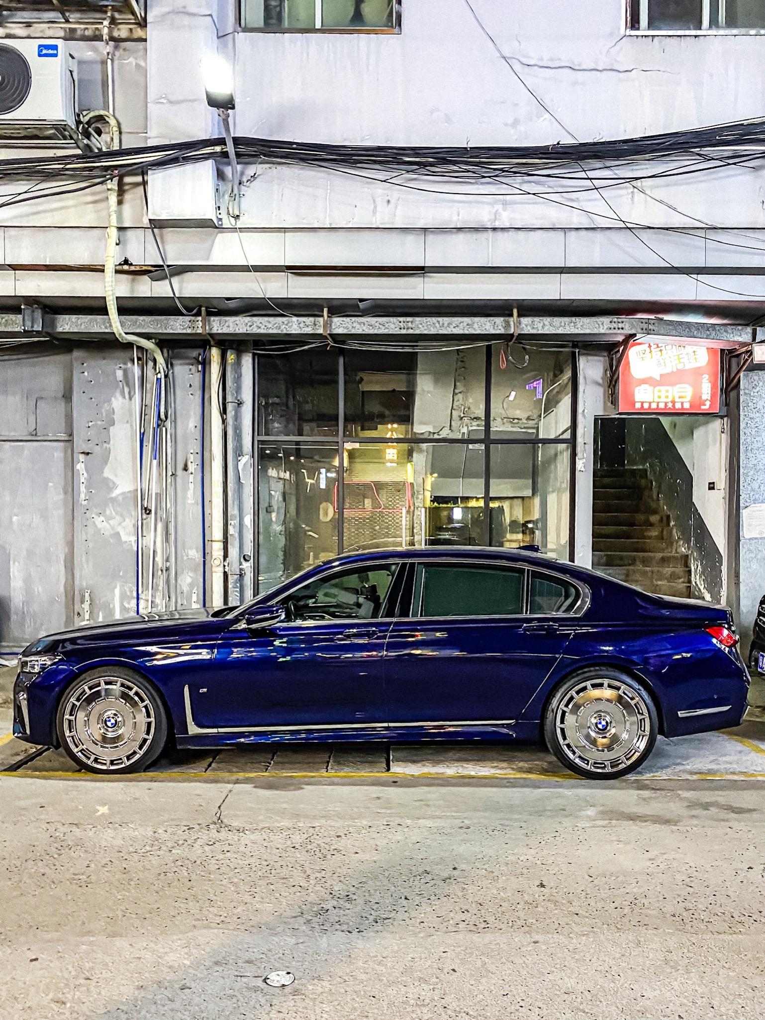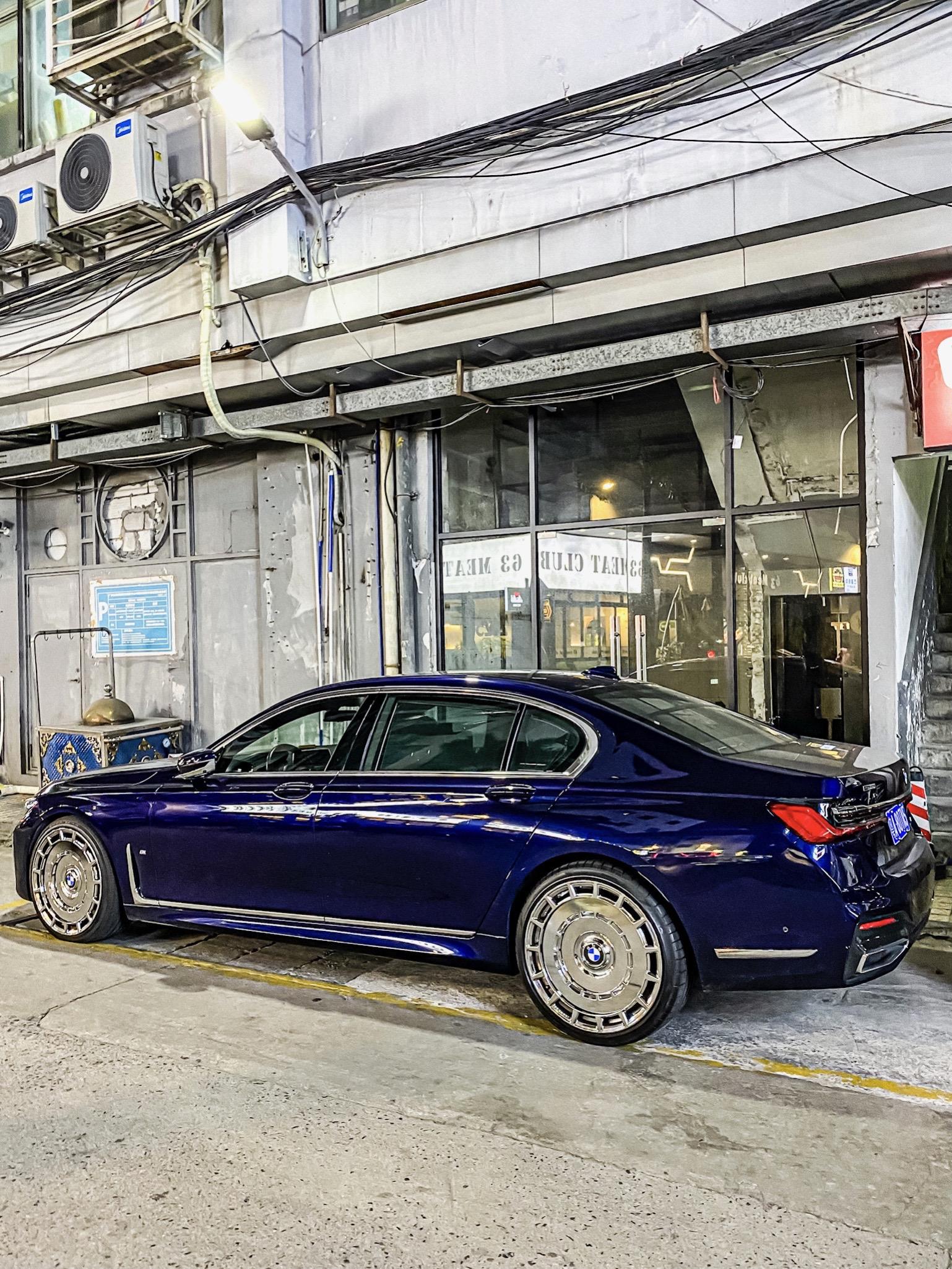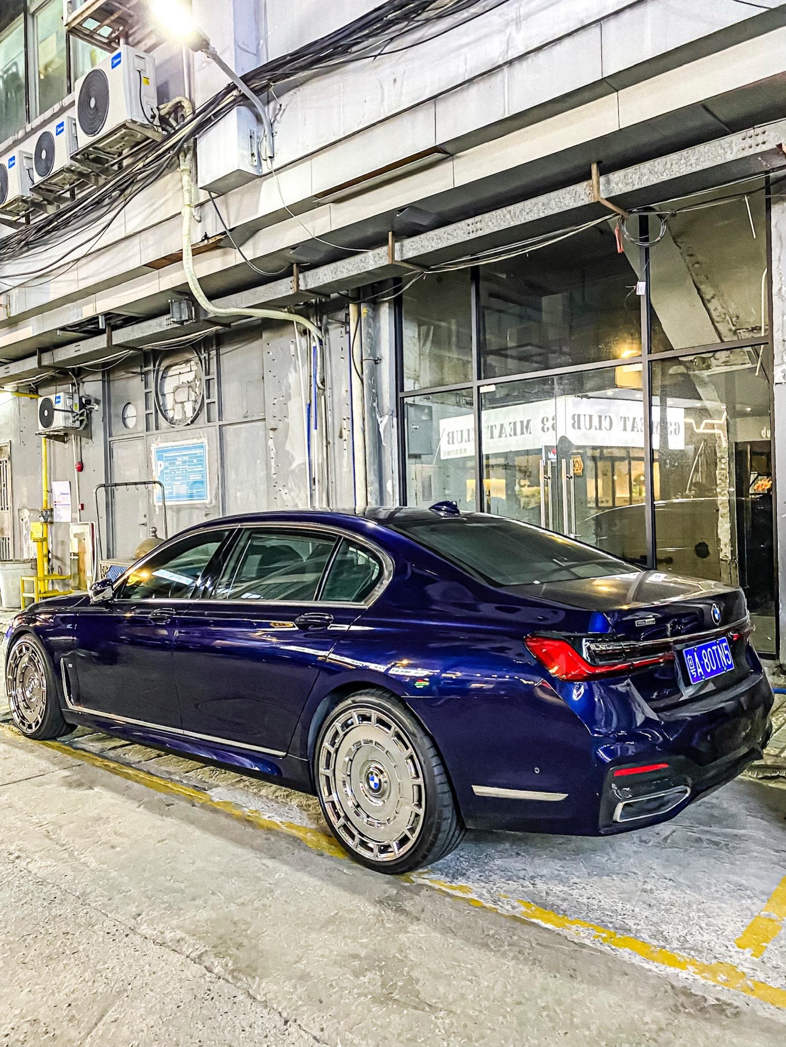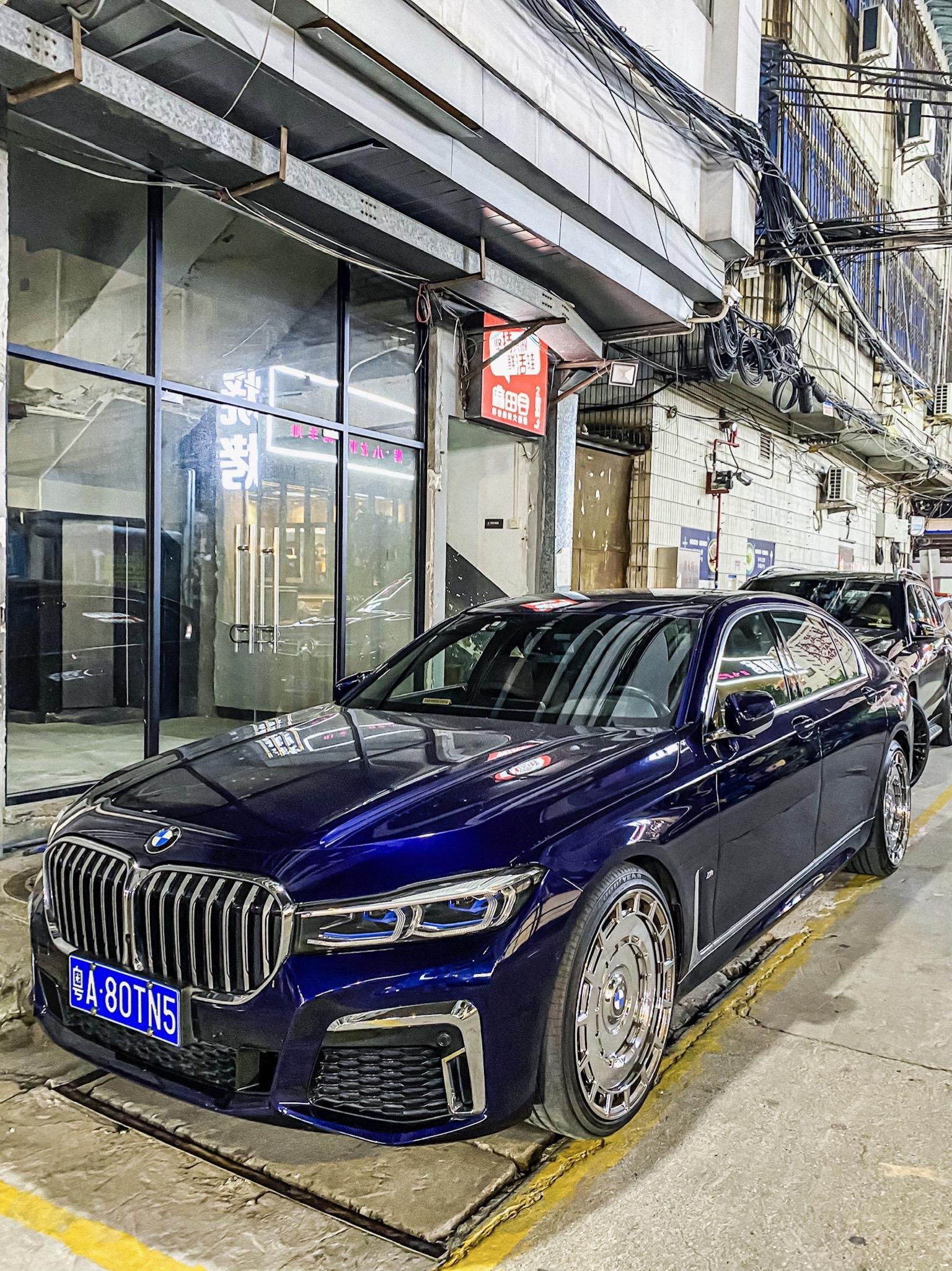 丹泉石蓝的g12宝马7系 完美外观的设计端庄优雅大气 搭配蓝眼激光大灯大饼轮毂颜值和气场都属于巅峰