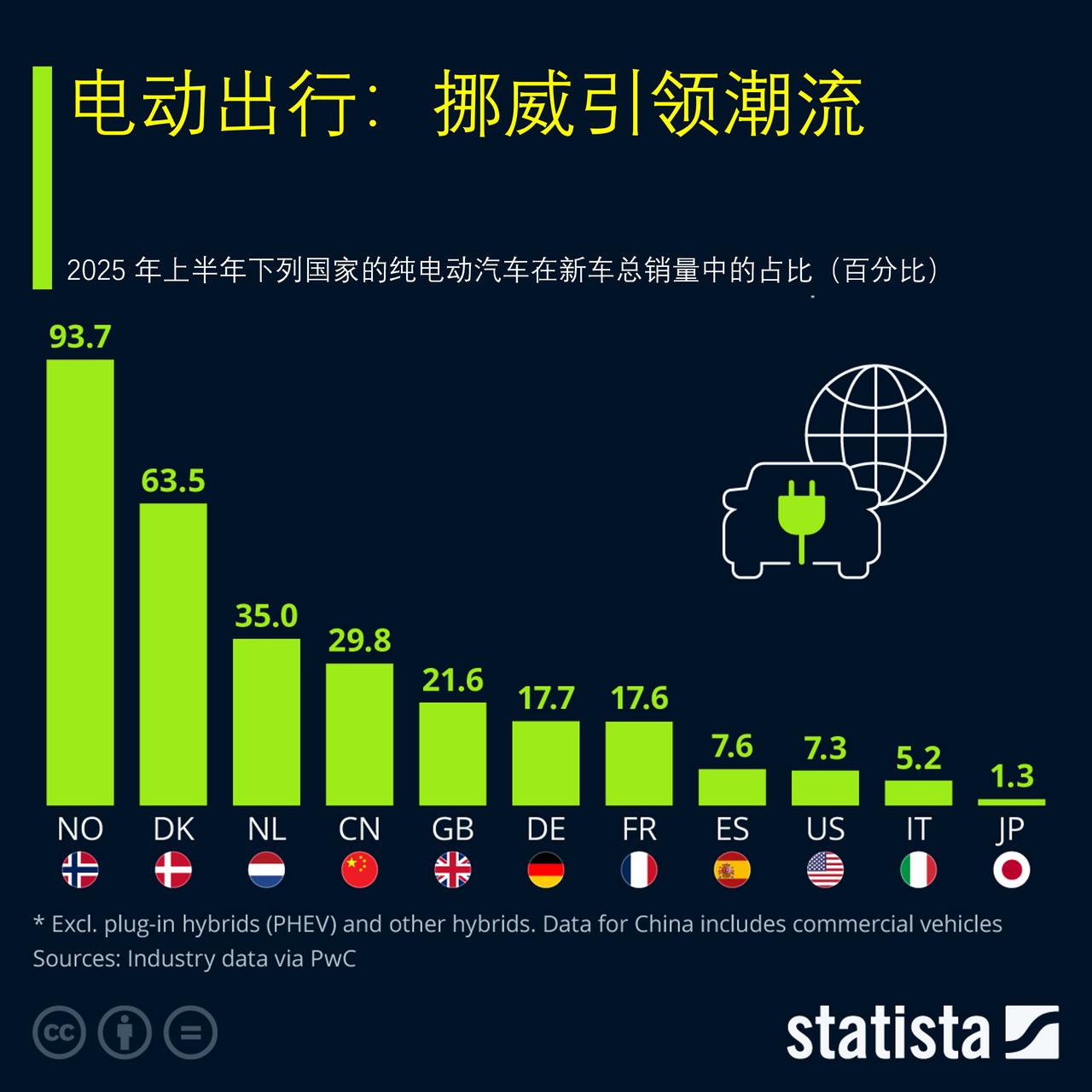 挪威引领电动出行潮流,它的模式其它国家能复制吗? 在许多国家的销量持续增长的情况下,全球电动汽车(BEV)市场在 2024 年首次突破了年 1000 万辆的销售大关,与 2023 年相比销量增长了近 10%。最近,在 2025 年 5 月,中国也达到了一个重要的里程碑,单月电动汽车销量超过了一百万辆,据国际清洁交通委员会(ICCT)的数据。 尽管在销量方面,中国无疑在全球市场中占据主导地位,但一些欧洲国家在电动汽车的普及率方面仍处于领先地位(从新车销售中电动汽车的占比来看)。多年来,挪威一直是一个显著的例外,位居榜首:根据普华永道编制的数据,在 2025 年上半年,该国超过 90%的新注册乘用车为电动汽车,创下了纪录。这反映出北欧地区电动汽车使用的迅速普及,丹麦和荷兰的市场份额也相当高:分别为 63.6%和 35.0%。在欧洲以外地区,中国在普及率方面处于领先地位,今年上半年电动汽车的市场份额为 29.8%(包括商用车)。相比之下,美国的电动汽车市场份额仅为 7.3%。 尽管挪威的政策措施(如税收减免、通行费减免以及其他激励措施)确实对推广电动汽车起到了极大的促进作用,但挪威模式却难以轻易地推广到其他国家。首先,该国征收高额的车辆进口税和汽车注册税,使得汽车的价格比美国要高得多。通过对电动汽车免除这些税款,挪威实际上是在以一种像美国这样的大国无法承受的水平对电动汽车购买进行补贴。其次,挪威是一个非常富裕的国家(讽刺的是,这要归功于其石油储备),拥有较高的收入水平。根据挪威国家统计局的数据,2025 年该国税后家庭收入中位数约为 64000 美元,与美国大致相当,但明显高于欧盟平均水平。