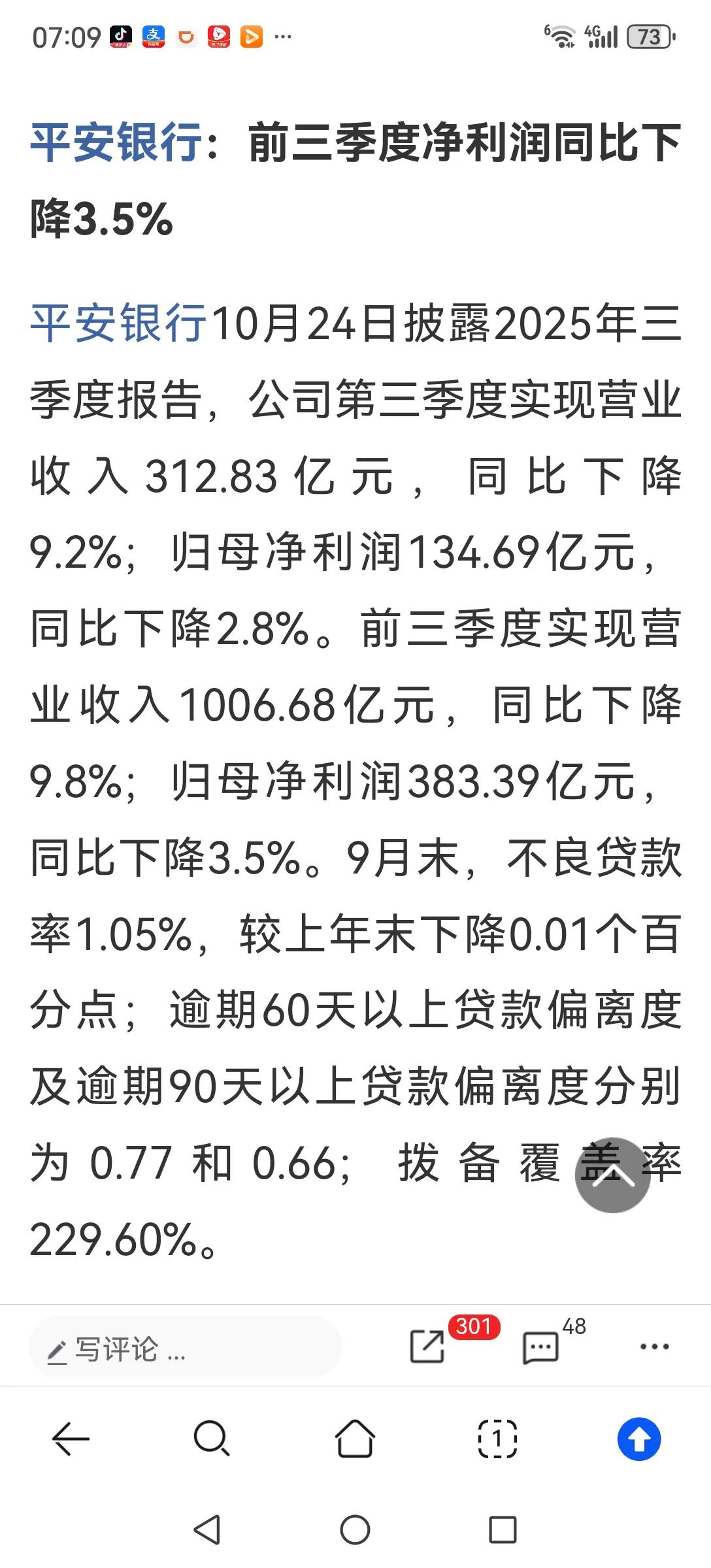 银行股的业绩拐点来了吗?从周四、周五公布的华夏银行和平安银行的三季报来看,净利润都出现了不同程度的下滑。华夏银行同比下降2.86%,平安银行同比下降3.5%。从当前的房地产状况以及银行净息差的不断降低来看,银行股的净利润出现一定徎度的下滑,非常正常。只要不出现系统性的风险,银行股仍然是两市中估值最低的,中长线投资者仍可逢低买入,长期持有。