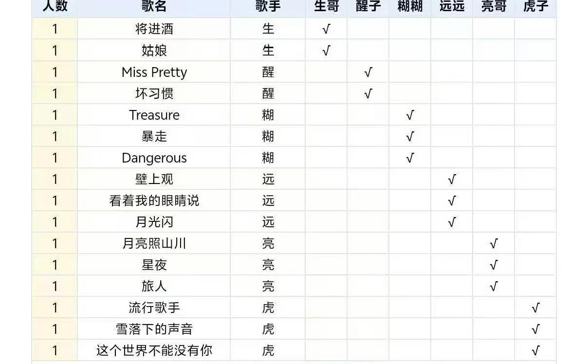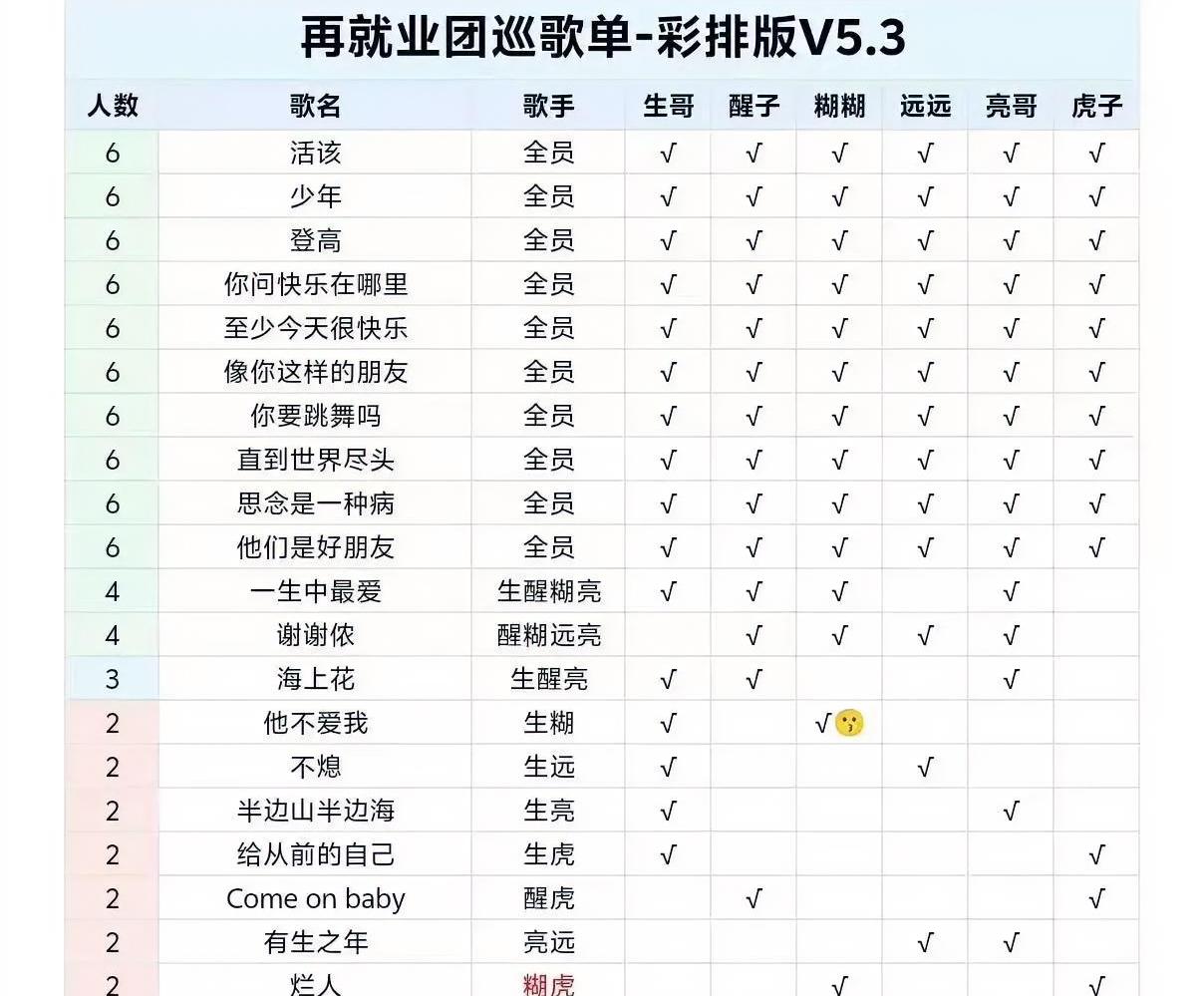 《至少今天很快乐》演唱会最新歌单,真是太全面了! 整整10首大合唱啊,真的是你想听的全都有!尤其是《直到世界尽头》和《思念是一种病》,真的没想到还能有现场版,好遗憾没能去到现场[可怜] 各种组合的合唱也有10首,陈楚生和苏醒的演唱曲目最多,陈楚生和苏醒之外的兄弟们每人合唱一首,最耀眼的是和王栎鑫合唱《他不爱我》,这个现场可能要疯啊[捂脸]! 单人独唱有16首,冠亚各两首,其余每人三首。每一首都是经典之作! 正常演唱会有36首歌,好盛大一场演唱会啊,再就业兄弟们终于做到了顶峰相见!至少今天很快乐 陈楚生