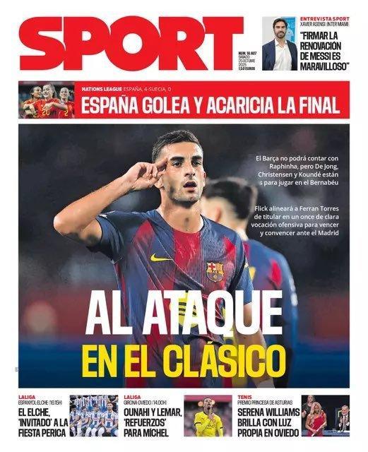 ◾️巴萨不能依赖拉菲尼亚,但德容、克里斯滕森和孔德已经准备好在伯纳乌上场。巴萨热点现场国家德比