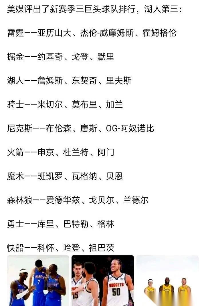 现在这球,不凑个三巨头都不好意思跟人打招呼。 你说这剧本, 到底是写给谁的? 恍惚间想起好多年前的雷霆,那仨小子,要是没散…… 真是一代人的意难平啊。 后来的火箭也挺硬,就差那么一口气。 至于我湖…… 算了,不说了。 说多了都是泪,懂的都懂。 夜深了,冠军梦哪有那么好做。 还是关灯睡觉吧。 明早起来,还得搬砖呢。