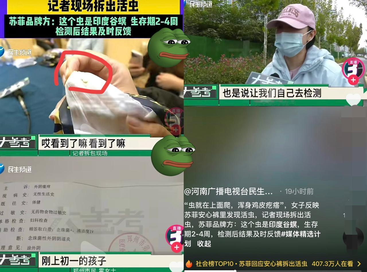 惊!苏菲安心裤竟然爬出活虫,还害得13岁女孩感染霉菌,品牌的做法简直让人心寒! 10月24日,河南郑州的霍女士给女儿买苏菲安心裤,用到第10包时,竟然看到活虫在里面蠕动。苏菲厂家回应生产环节发现活体虫类的可能性为零,让霍女士自己去检测,说大厂有大厂的流程,霍女士带孩子检查后孩子感染霉菌。后记者现场随机拆封同批次产品,再次发现活虫,品牌方负责人这才当场鞠躬致歉,还表示这个虫是印度谷螟,虫如何进去的,不当的储存、物流运输等都有可能使虫源侵入…… 大家都清楚,女性卫生用品与身体健康息息相关,尤其是给未成年人使用的产品,品牌方本就应该在品控上严格把关。然而,出了问题后,品牌方不仅不积极解决,反而让消费者在维权道路上举步维艰。这样的品牌,实在难以再让人信任! 苏菲这样的大牌子都爆雷了,太让人心寒了!以后该用什么牌子呢?姐妹们平常都用什么牌子比较好,有推荐的吗?