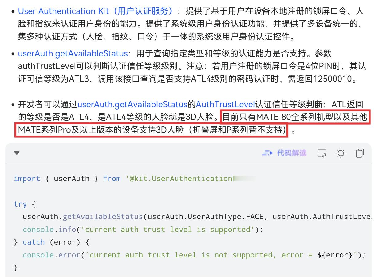 HarmonyOS官方开发文档透露「华为Mate80全系支持3D人脸」,信息有待进一步确认[卡皮巴拉]