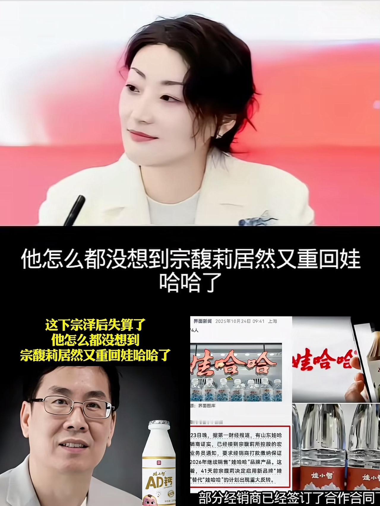 杜建英沉默了,宗继昌沉默了, 宗泽后也沉默了! 他们怎么都没想到,不仅 自己带着宏胜系杀回娃哈哈,连之前被查的得力干将严学峰都官复原职了。 宗泽后是真信了,以为侄女扛不住股权和商标的难题,赶紧注册“娃小智”蹭热度,产品线跟娃哈哈一模一样,还喊着送SUV拉经销商。 可他忘了,老百姓认的是经营三十年的老牌子,不是擦边球的仿品。 现在好了,经销商都开始给娃哈哈打明年的保证金,毕竟谁愿赌刚注册的新牌子? 宗馥莉手里握着20个生产基地,“娃哈哈”商标权也没丢,这根基哪是注册资本500万的娃小智能比的。 说白了,宗泽后输在太急功近利,以为靠家族名头就能蹭走国民信任。 反而宗馥莉这招以退为进,既理顺了商标问题,又看清了谁在真心跟着走。 你说,那些犹豫要不要给娃小智打款的经销商,现在该偷偷撤资了吧?宗馥莉重启娃哈哈品牌会有哪些影响 你期盼的幸福生活是怎么样的?