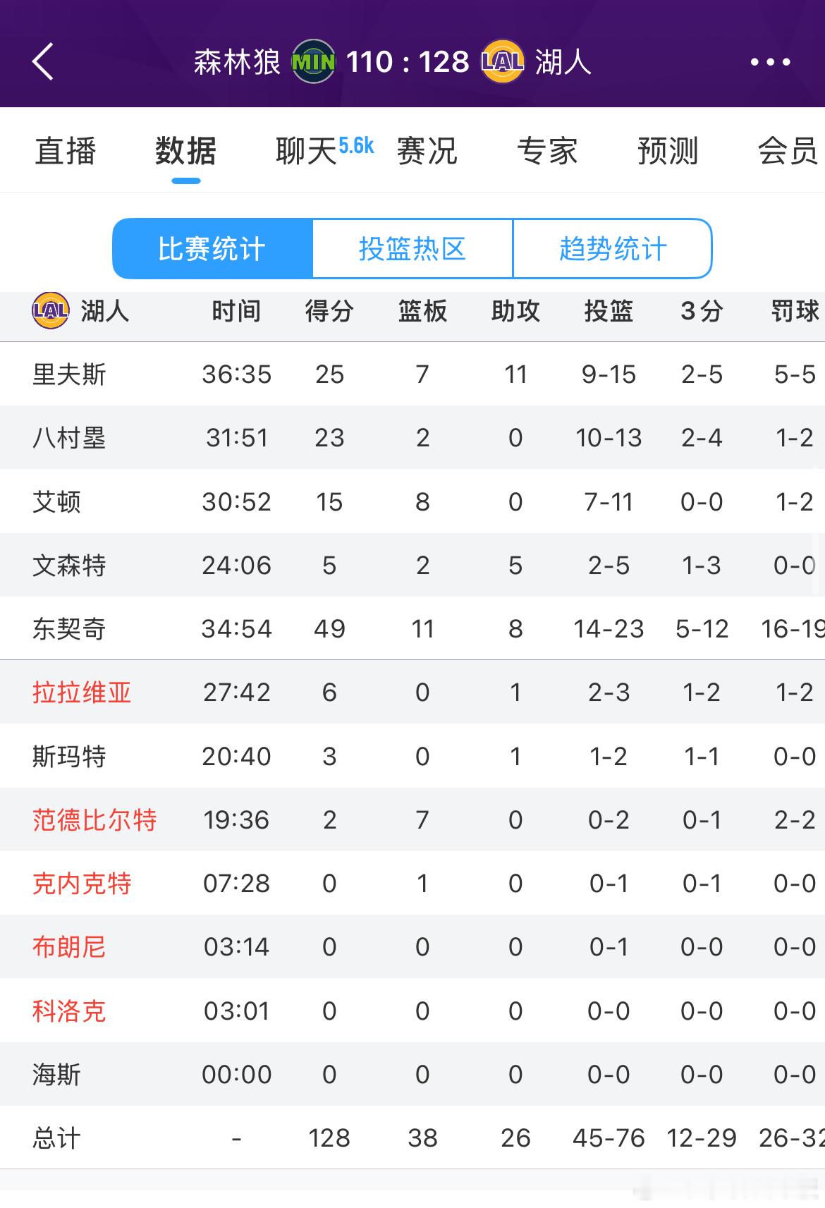 湖人128-110大胜森林狼,如何评价这场比赛?东契奇49分11板8助,里夫斯2