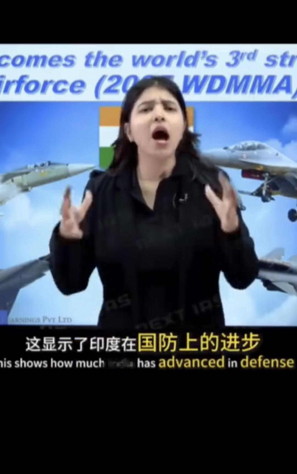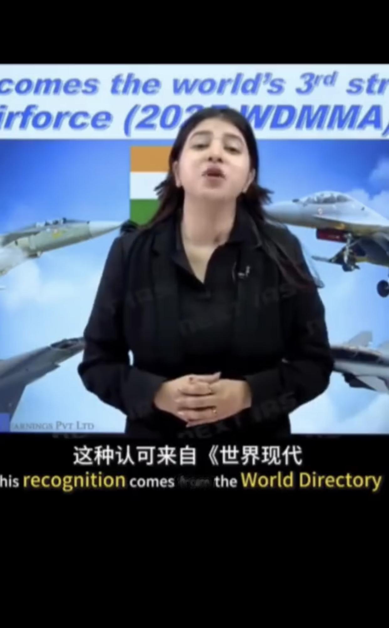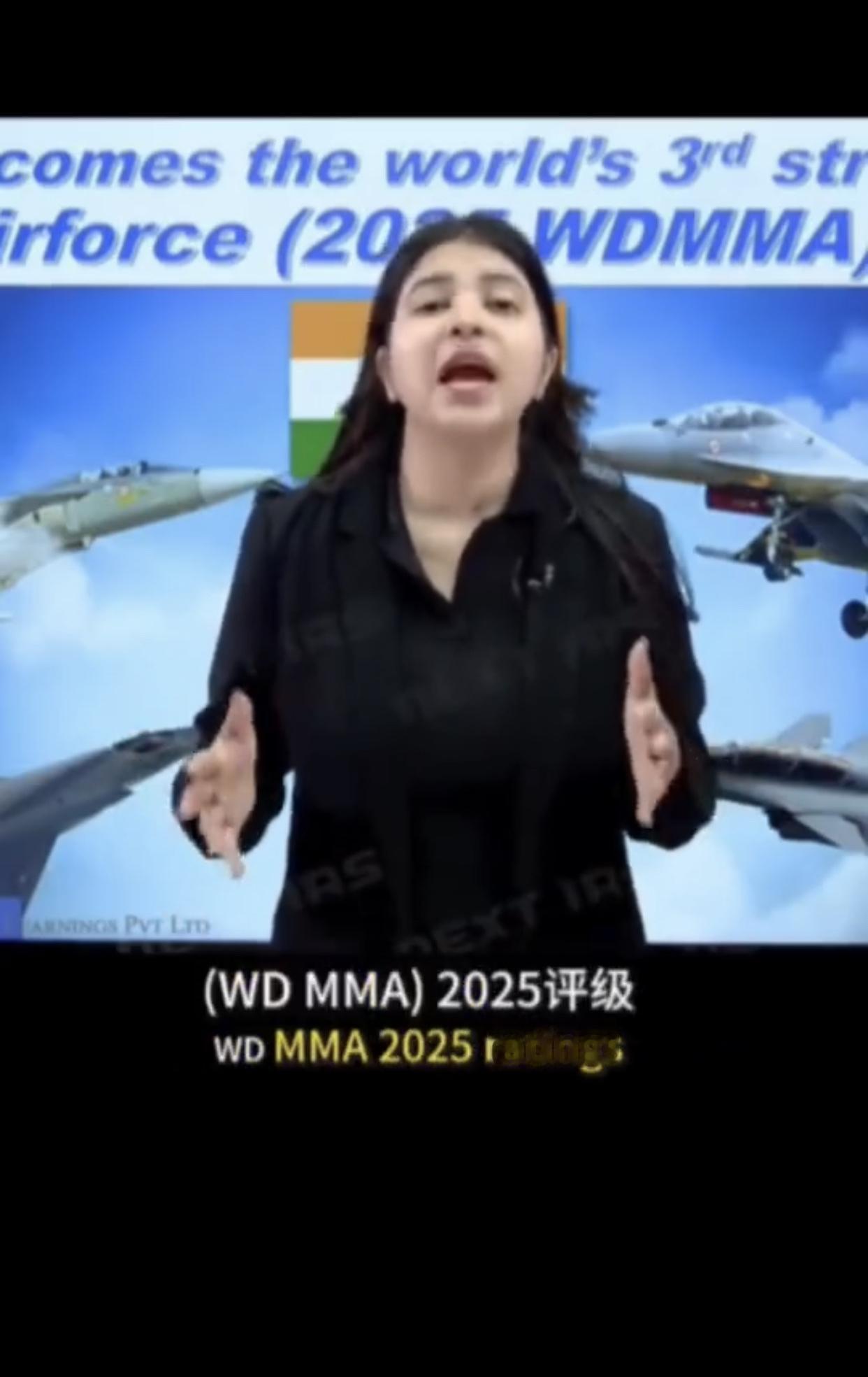 印度电视节目主持人兴奋的表示: “今天,我们要聊聊我们印度的一项非常了不起的成就,印度空军已经成为世界第三强的空军,领先于中国,这种认可来自《世界现代军用飞机名录》WD MMA2025评级,该名录会对全球各国空军进行研究和对比,这显示了印度在国防技术上的巨大进步,以及印度空军在过去几十年的训练和和空中战略,我们的空军不再只是数字,这是关于质量现代化和明智的战略的结果。”