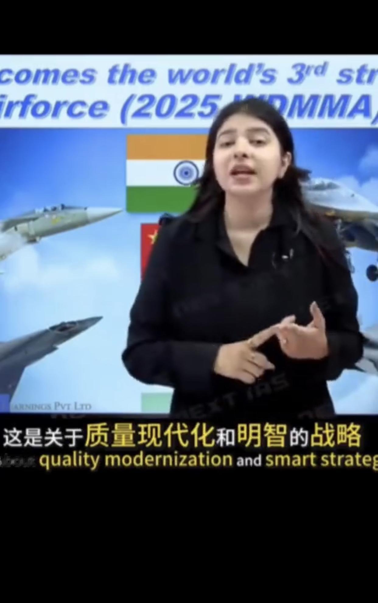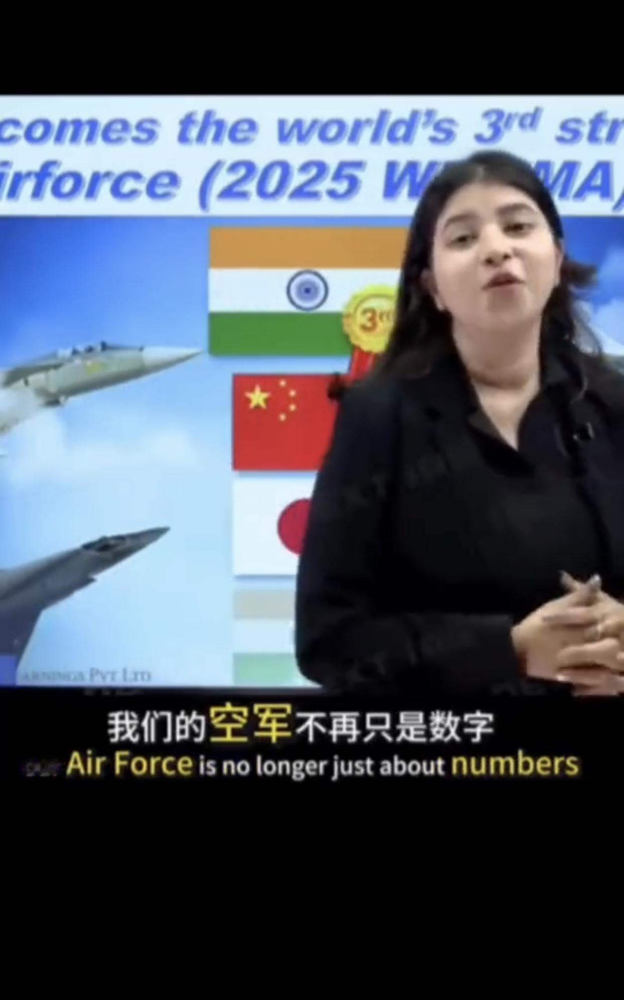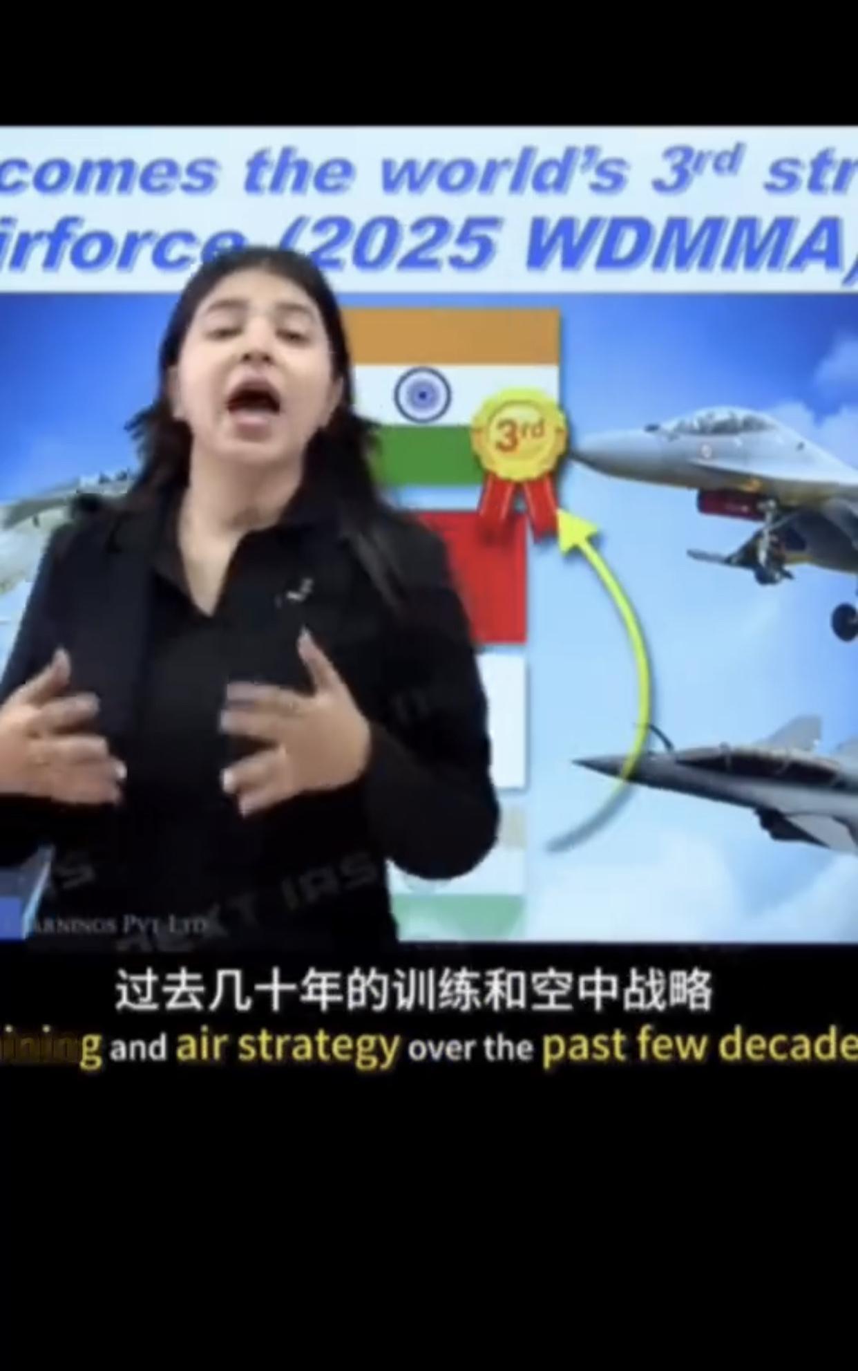 印度电视节目主持人兴奋的表示: “今天,我们要聊聊我们印度的一项非常了不起的成就,印度空军已经成为世界第三强的空军,领先于中国,这种认可来自《世界现代军用飞机名录》WD MMA2025评级,该名录会对全球各国空军进行研究和对比,这显示了印度在国防技术上的巨大进步,以及印度空军在过去几十年的训练和和空中战略,我们的空军不再只是数字,这是关于质量现代化和明智的战略的结果。”