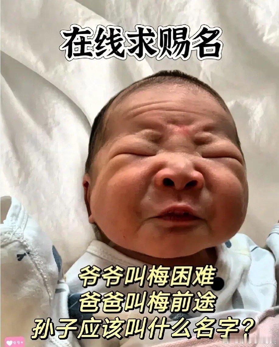 宝宝长得丑,给宝宝起个好听名字呗!宝宝的爷爷叫没困难,宝宝爸爸叫没前途,宝宝叫什