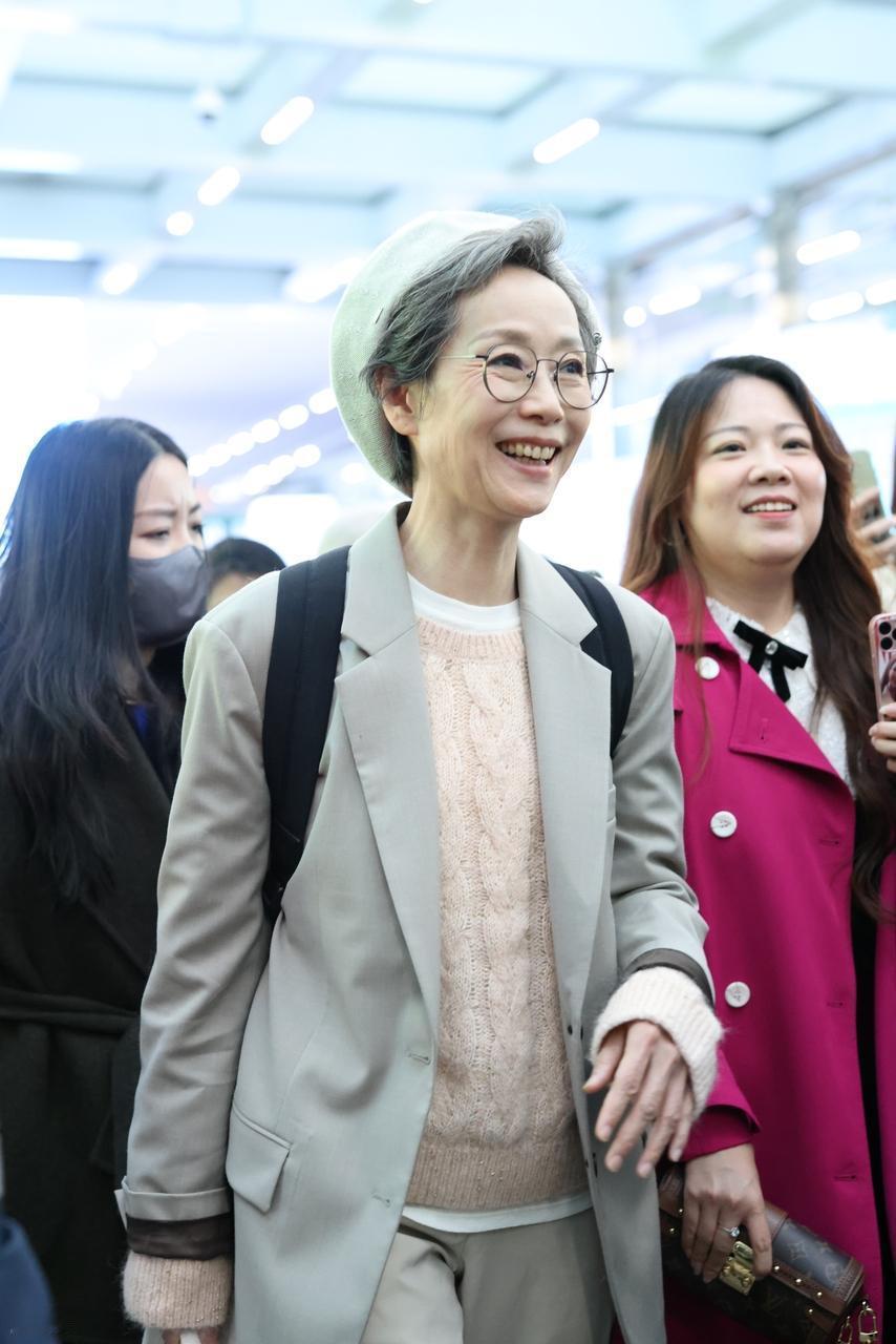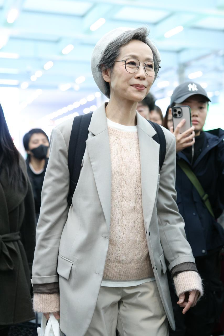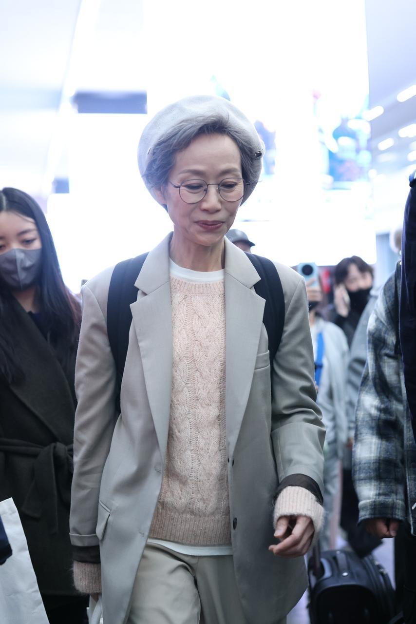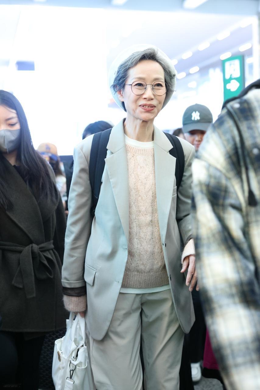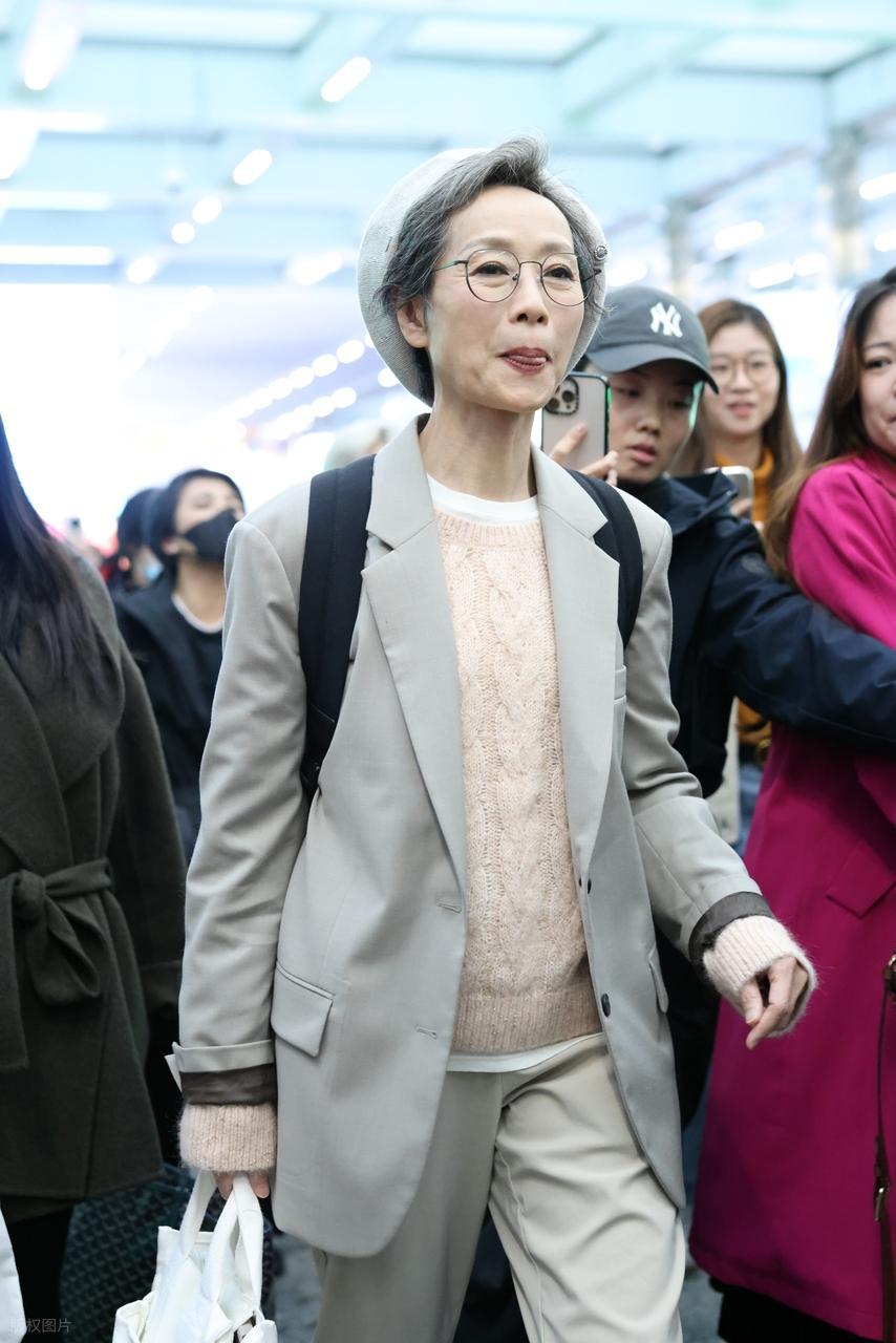 最近叶童现身北京机场,她这回搭配了一身浅色的衣服,看起来年轻又时尚。 叶童里面穿白色T恤,然后套了一款米色的毛衣,两件衣服叠穿的效果不错。 她外面穿了一身灰色的西装,看上去潇洒又迷人,也很有洒脱之美。 叶童的身材保持的很好,皮肤也不错,还有种活力满满的感觉,不得不说她也算是个不老女神啊。 叶童留着清新的短发,虽然有了几根银色的头发,不过显得更有潮流感了。 她头上戴着灰色的圆帽,还搭配了一款眼镜,展现出了满满的文艺气息。