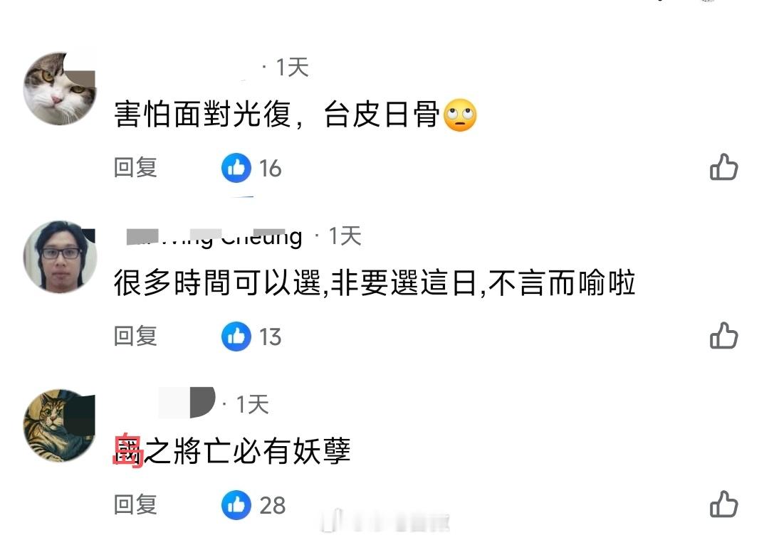 岛上的人都看不下去了,直喷绿营是“害怕面对光复,台皮日骨”[怒]