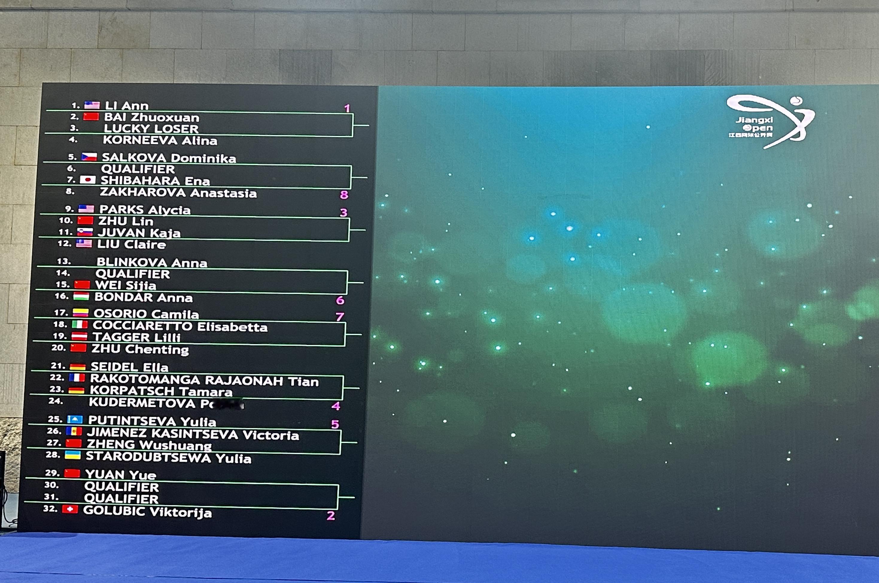李吉妮作为头号种子领衔,格鲁比奇开启卫冕之旅,中国选手首轮对阵如下👇