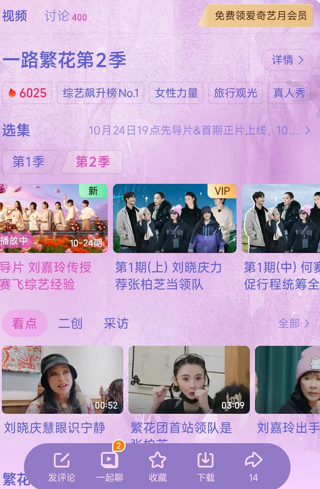 《一路繁花第2季》看了一点,没有第一季好看,嘉宾之间太客气了,难怪热度这么低。