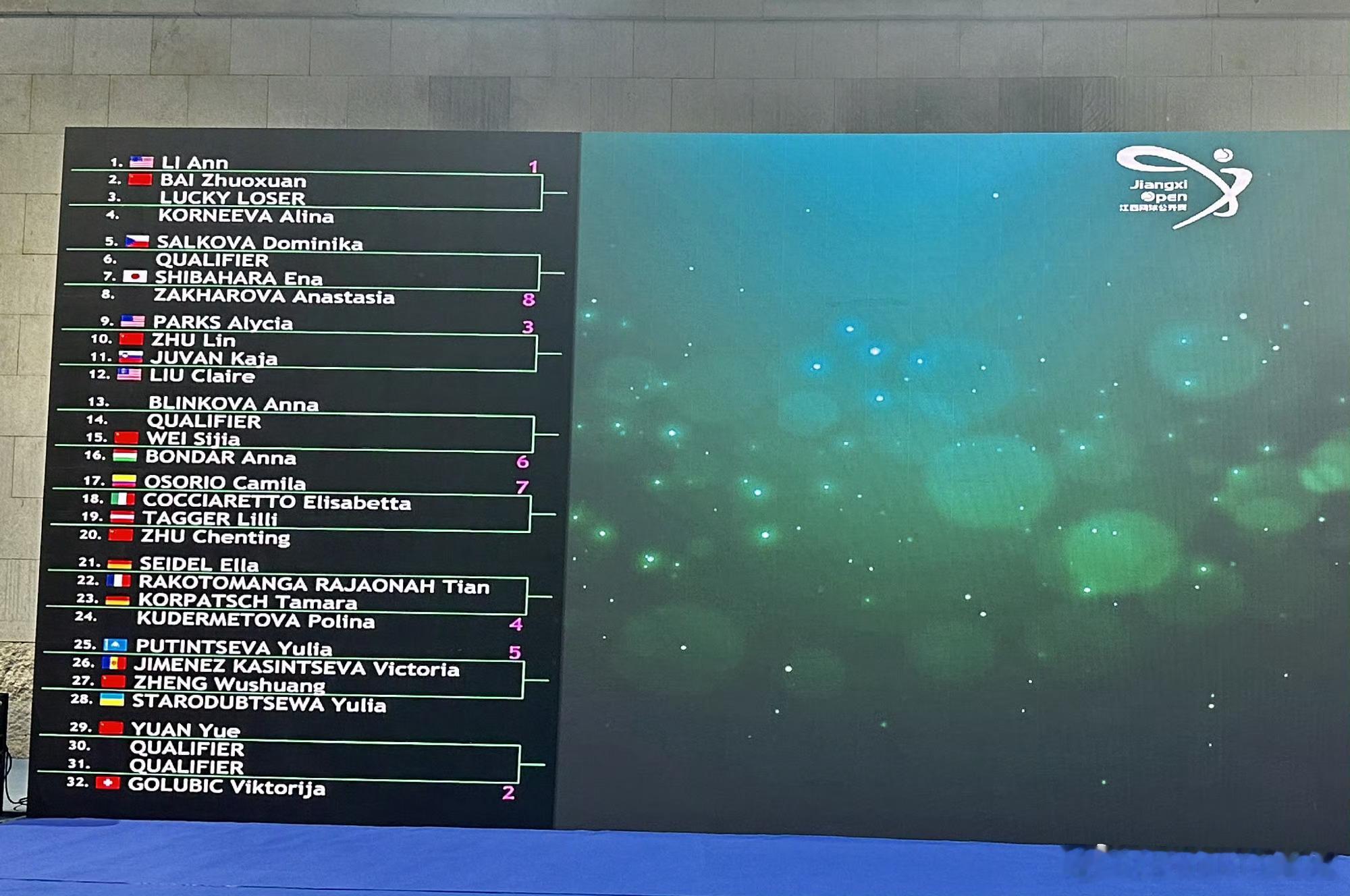 九江250赛女单正赛签表,中国选手签运如何?九江那么冷吗?都穿羽绒服!