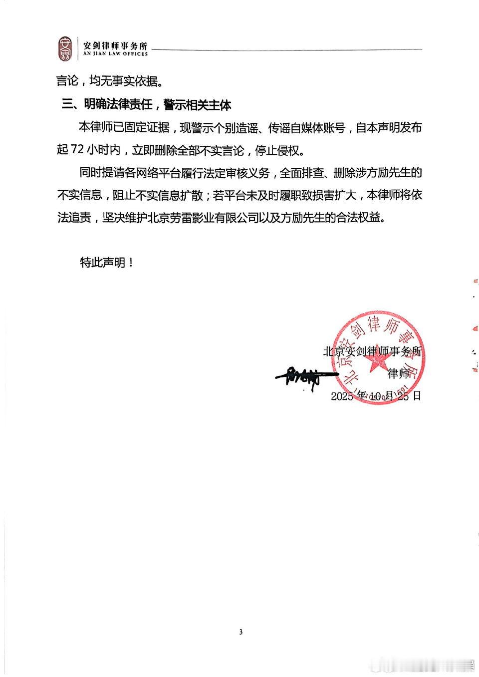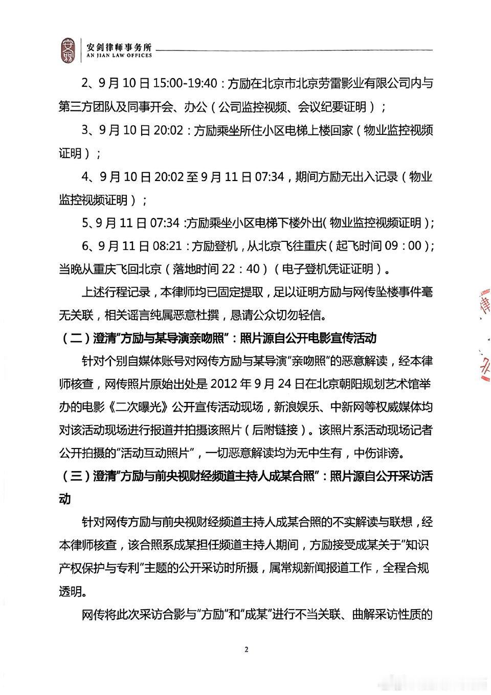 这才是真正的“求 锤 得 锤”!面对近期网 络上的种种猜测,方励直接发了律 师 声 明,并公布了自己9月10日、11日的相关行程单作为回应。不仅瞬间让所有不 实 传 闻 被瞬间击破,更是让造 谣 的人无话可说。在 舆 论 场里,有时候最朴素的 证 据 反而是最有力的武器。