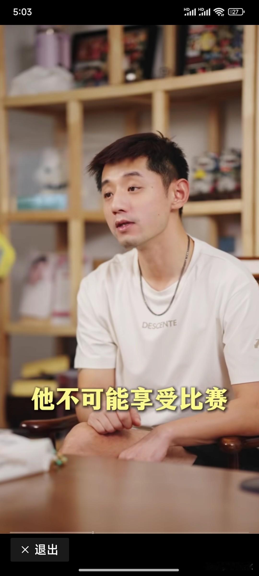 张继科说:运动员不可能享受比赛,越是优秀的运动员压力越大! 球迷来看你的比赛, 他们嘴上虽然不说, 但他们内心还是希望你赢的! 你能放松吗? 王楚钦也说过: 身兼三项, 每一天都是煎熬, 不但每天都要训练, 还要担忧下一场比赛能不能胜, 这是长征一般的煎熬!
