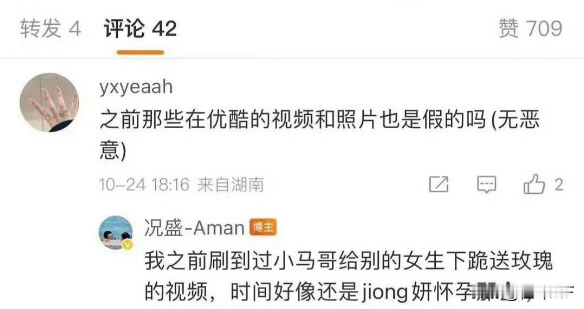 《爸爸当家》中的况盛又出来作妖了,之前因为和马杨一家的合体被关注,后面况盛因为和马杨家的联名款衣服产生矛盾后被扒一些负面,况盛不惜把的女儿拉出来挡枪,现在马君妍官宣怀二胎,他又出来说马杨给别的女生下跪送玫瑰花,还是在马君妍怀孕那会?有证据吗?原先在《爸爸当家》说祝马君妍早日怀上二胎,现在怀了二胎就这样说,这安的什么心?做人可千万不要为了博取流量连底线都没了吧!况盛把在《爸爸当家》里好感都败没了。