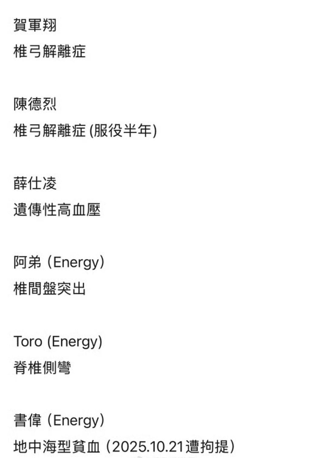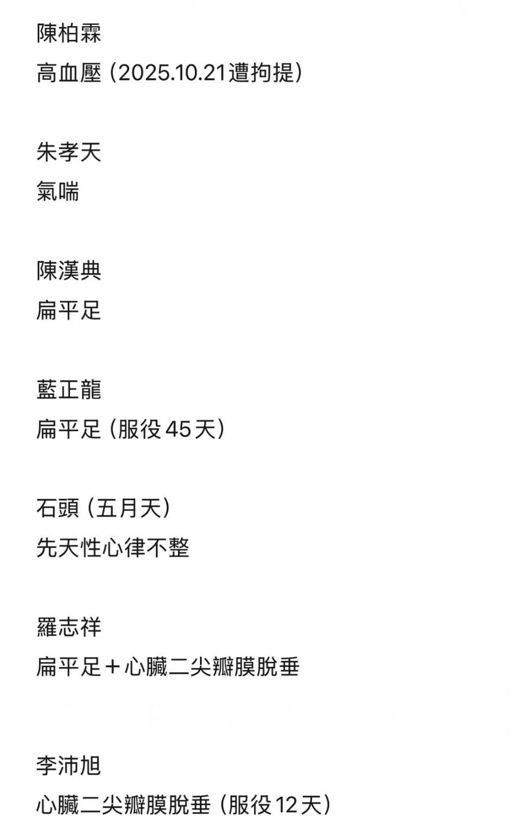台湾艺人免服兵役名单